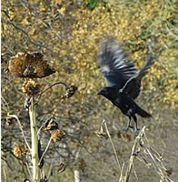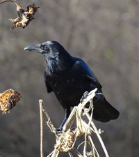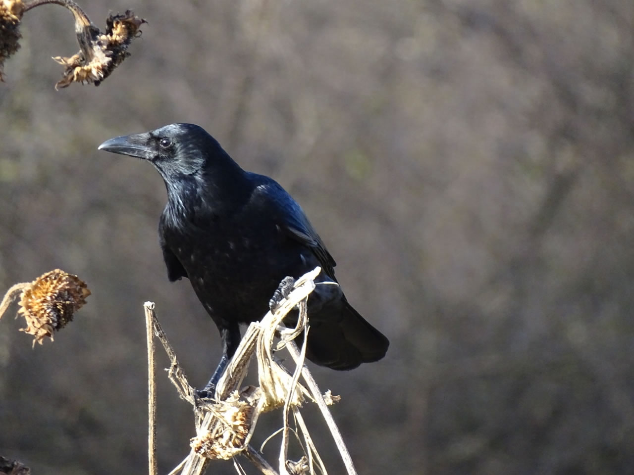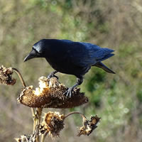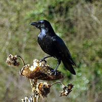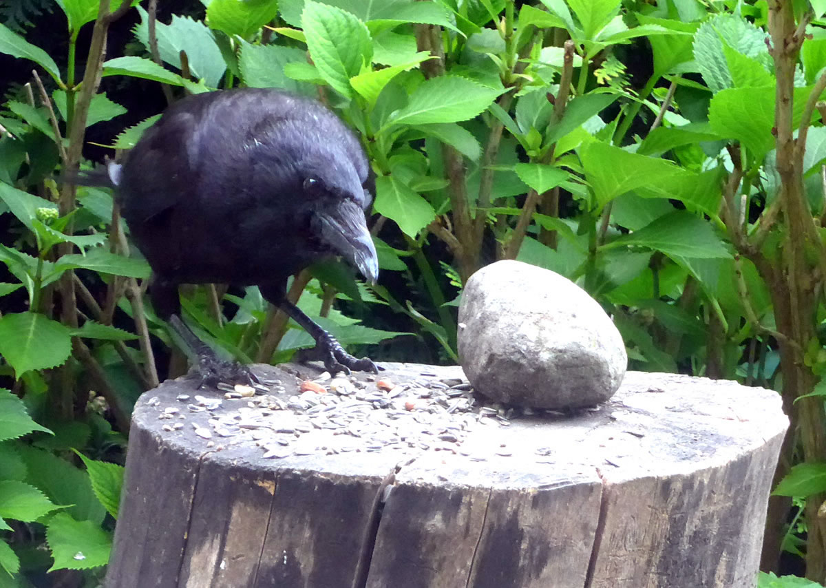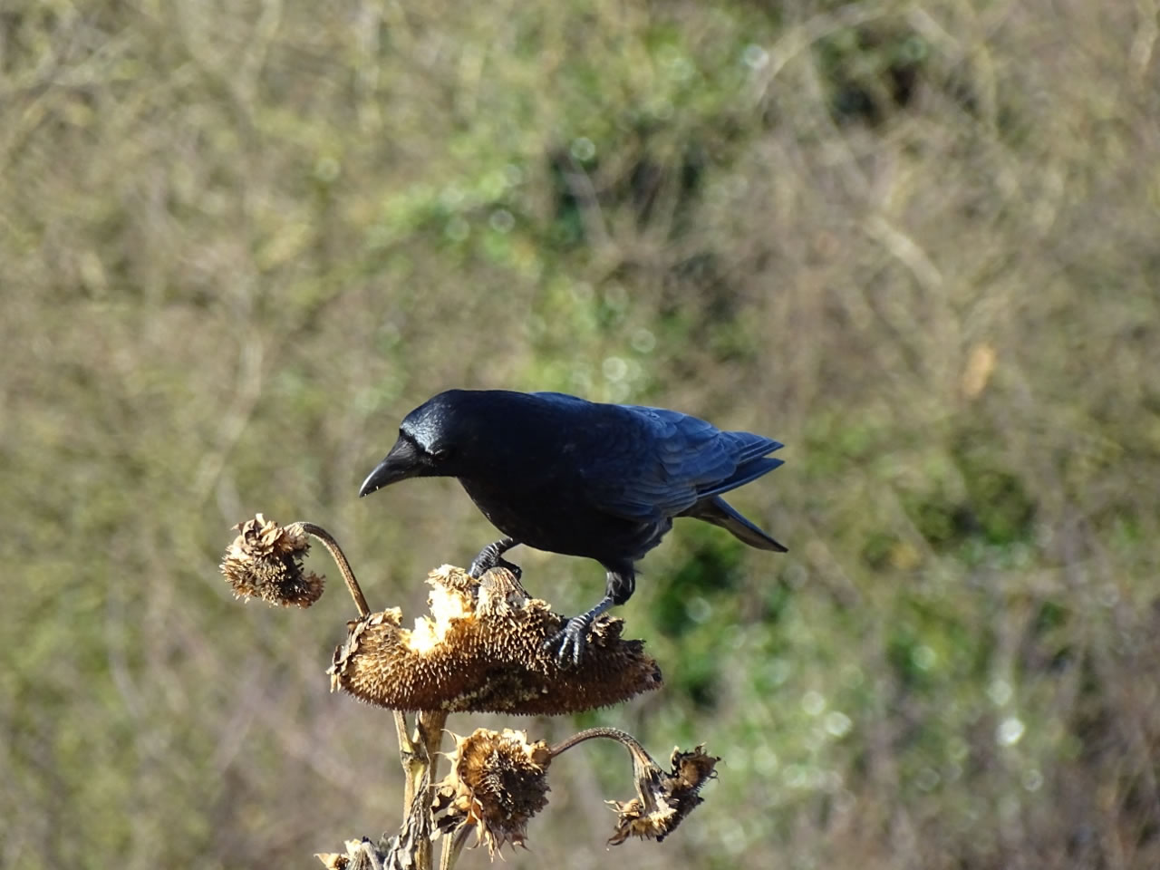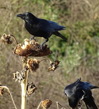 mal even kamen un kieken. Buten seten de Raven up de olen Sünnenblomen