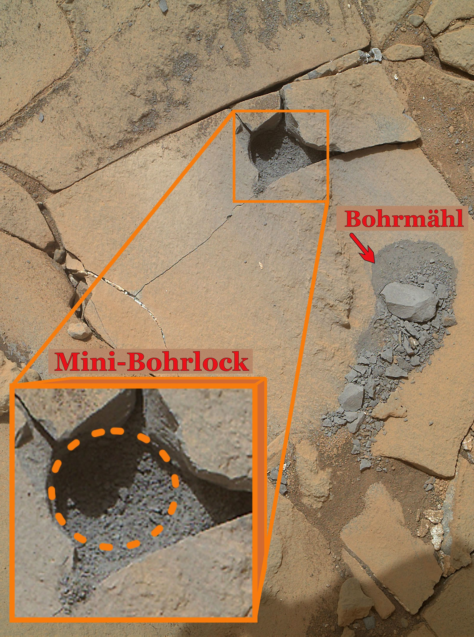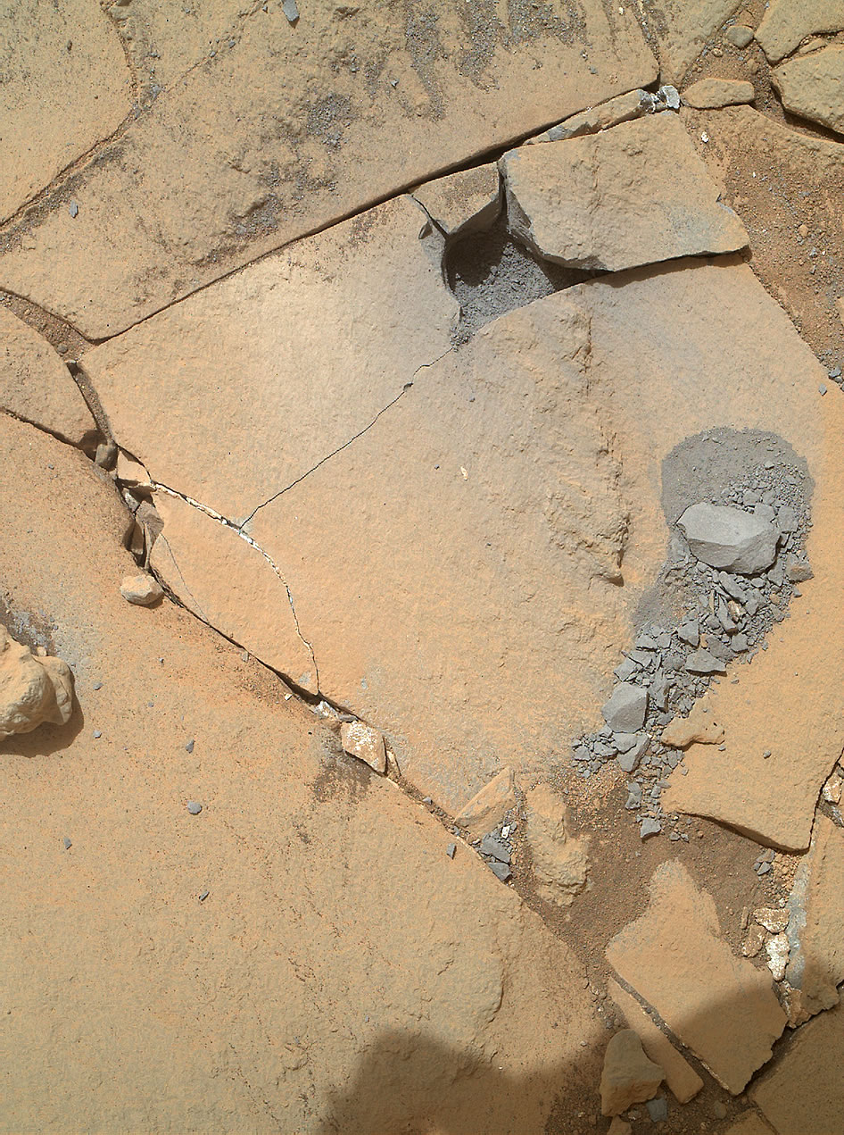Dornao ünnerseuket dei Apparaote dei Textur van dei jüst upnaohmen Probe: Bestaiht sei den Test, werd sei siebet un updeilt, vördem sei för dei wiedergaohn chemischken un mineralogischken Tests an dei Laborinstrumente binnsiet van dat Fohrtüg wiederleitet werd. Dorbi draff dit Materiaol dei Hardware nich verstoppen. Bit nuhen har sick neiwind dei meeste Tied in dei Gägend mit den Naomen Yellowknife Bay uphollen dat is ein olden Seebodden, dei vör drei Milliarden Johre tauminnst dei chemischken Grundlaogen för ein mikrobiellet Läben vellicht in sick wohrde. Dat läset dei nasa-Forschkers üm Ashwin Vasavada tauminnst ut dei Resultaote van dei dor unnersöchten Sedimente. Van Yellowknife ut feuherde neiwind in dei leßten 15 Maonde dei acht Kilometer bit nao den Scharpen Barg, den hei nu mit System unner dei Lupe nimmp. Originaol-Artikel