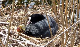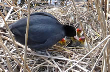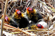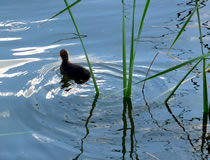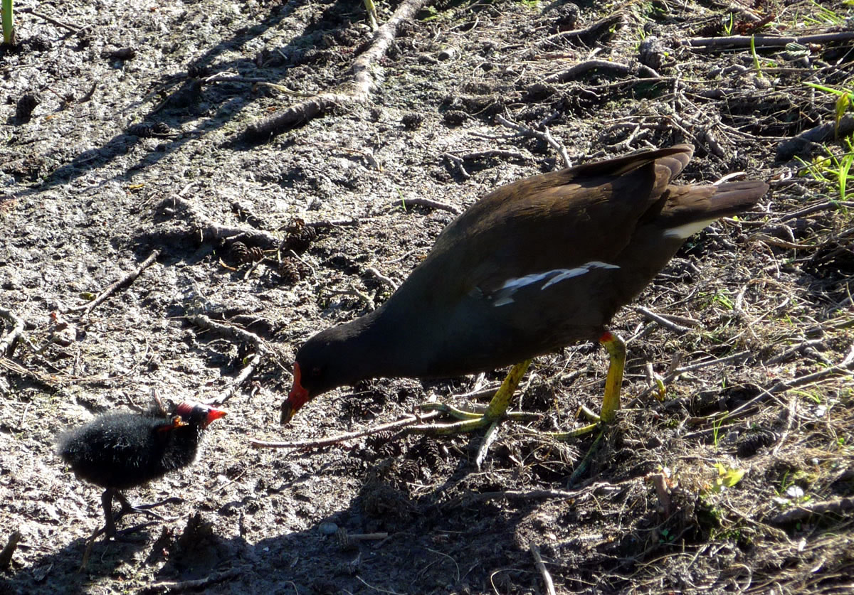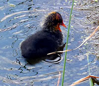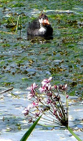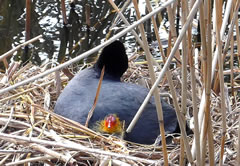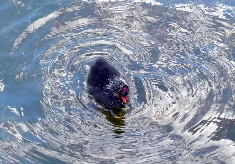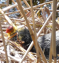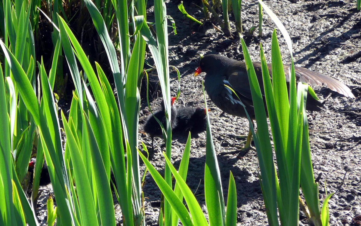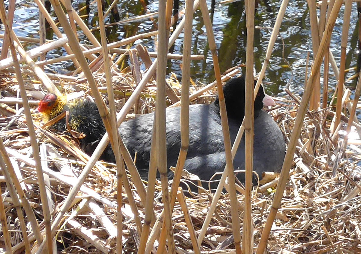 10.7.16 ....Blessi De Öllste ut de Kinnerstuuv Dat is al n'poor Daag her, dat Blessi dat endlich schafft harr, ut dat Ei to slupen. Nu keek he neescheerig ümher. In de Hauptsaak sehg he Water un Schilf. De Schilfhalme versparrn em de Utsicht. Aver ut dat Nest tru he sick noch nich. Lever verkroop he sik noch wedder ünner Modders warmes Fedderkleed.