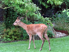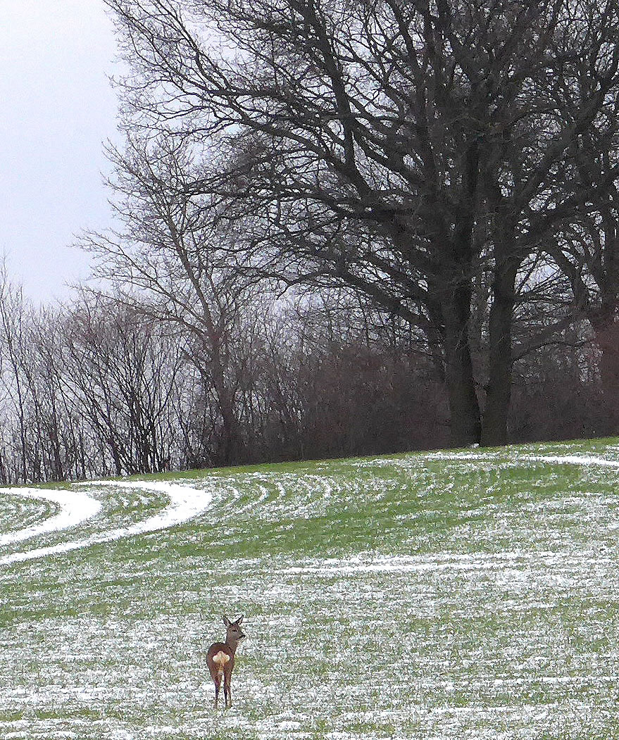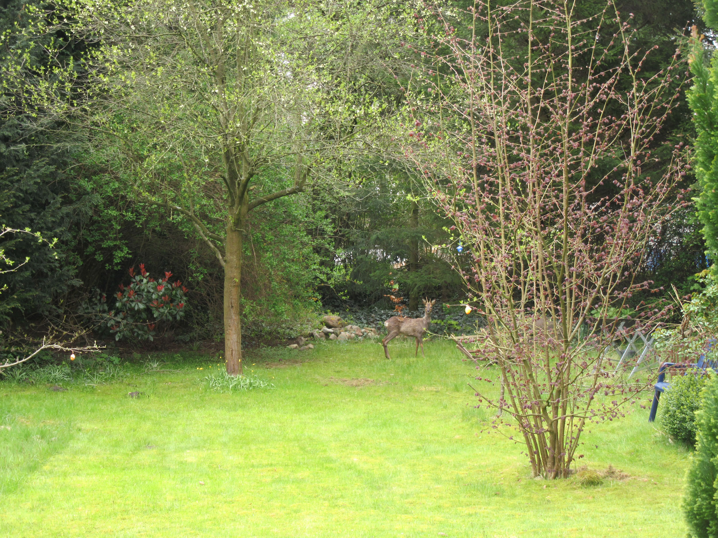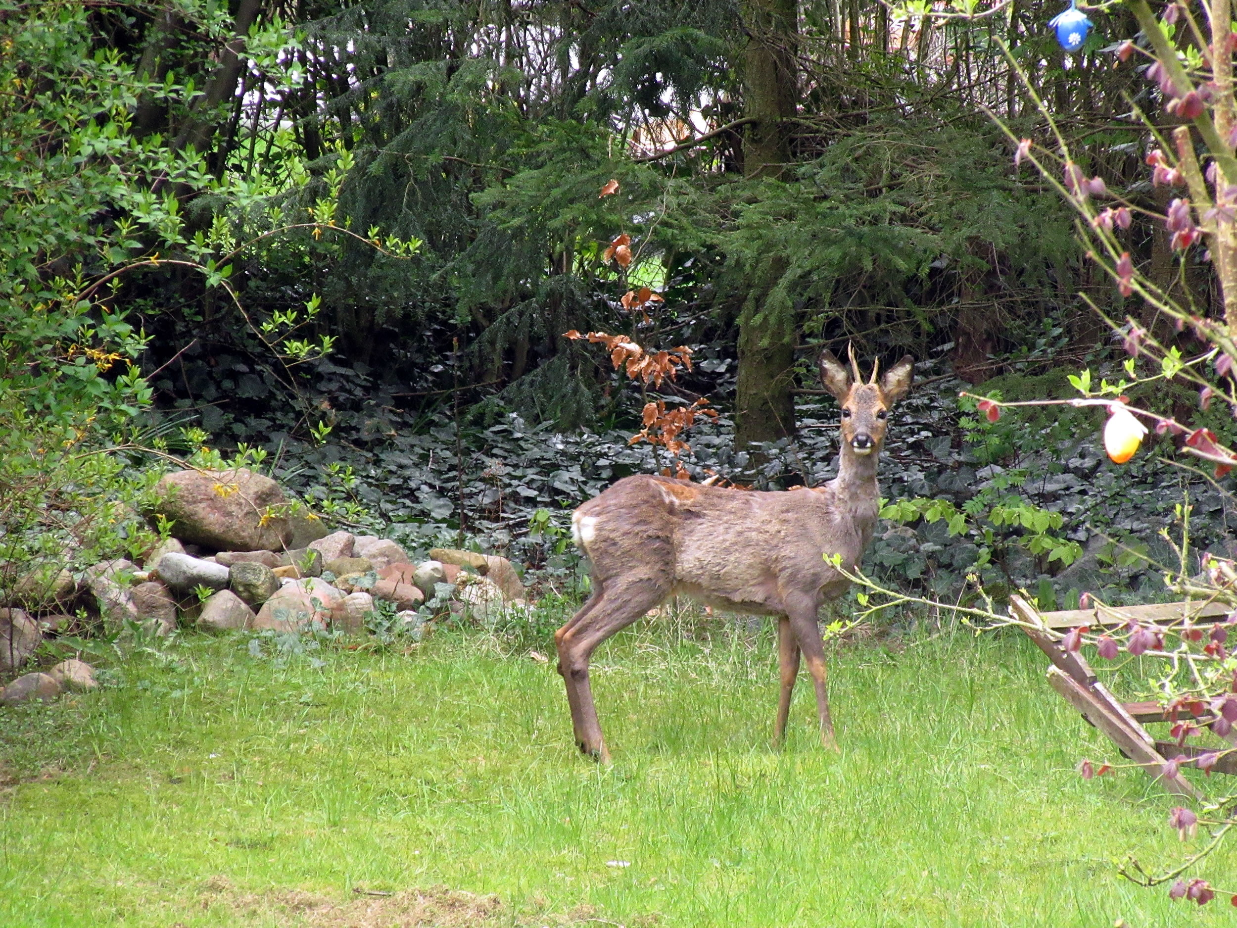 Ja, un de Besöker kiekt ehr ganz sülvstbewusst an. En Rehböckchen!