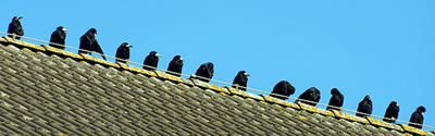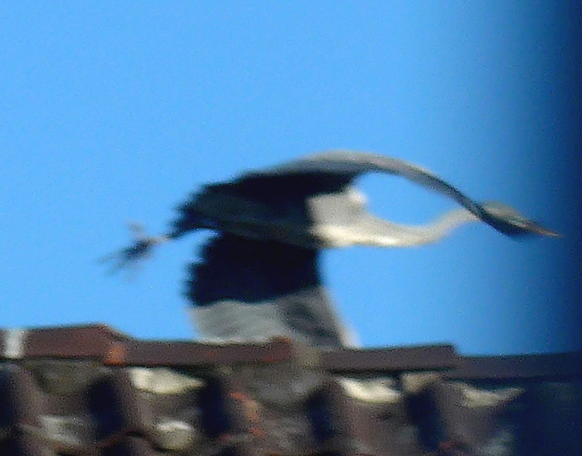 Dack. Up eenmal flog de ganze Kreinschwarm vun dat Schüünendack