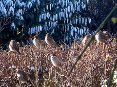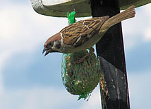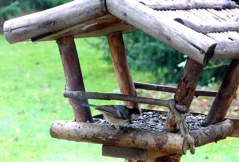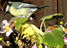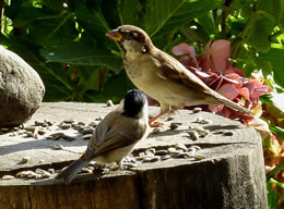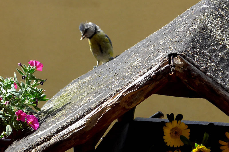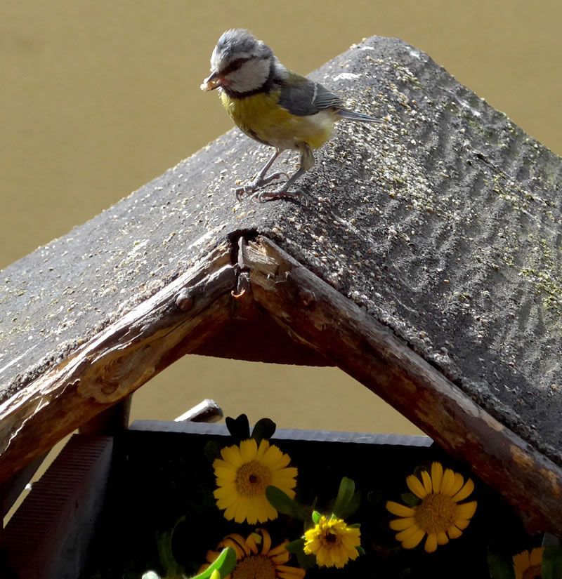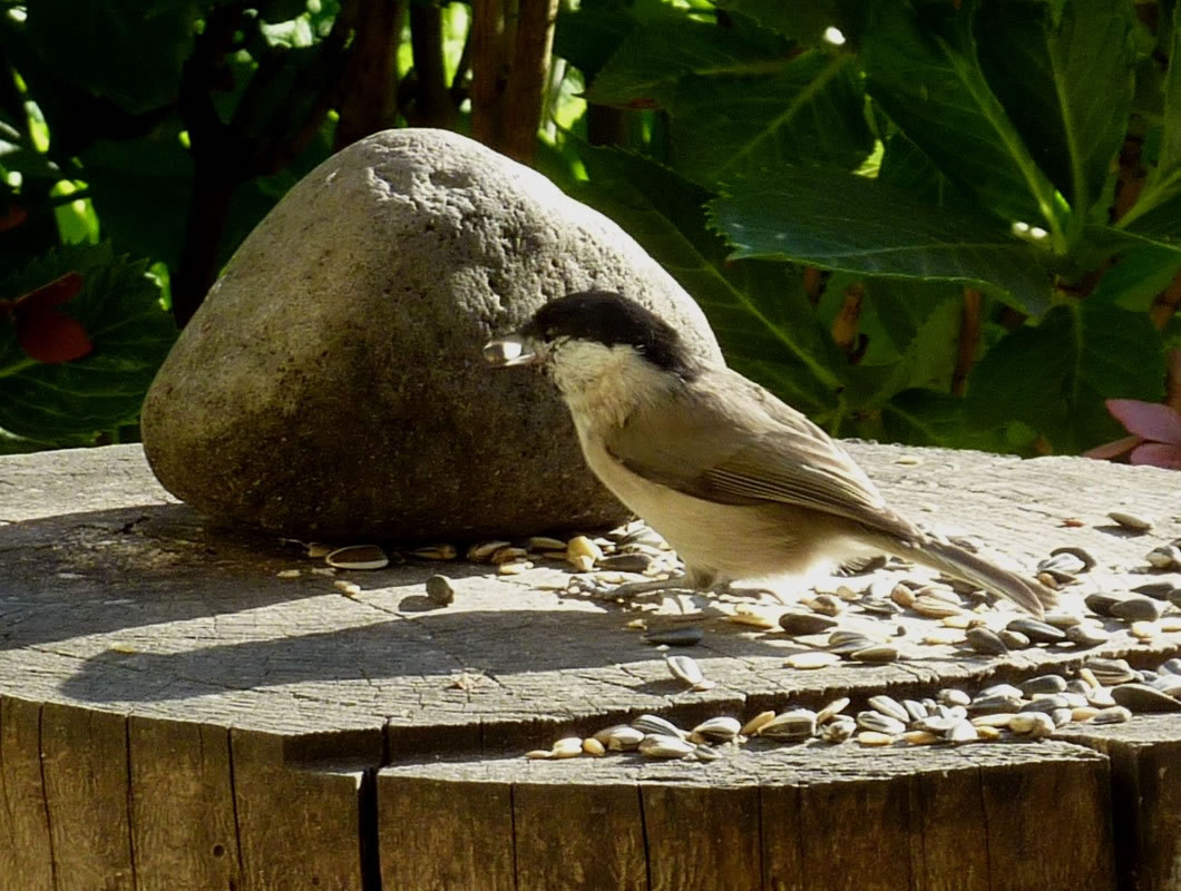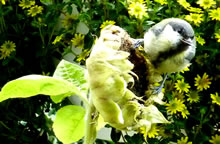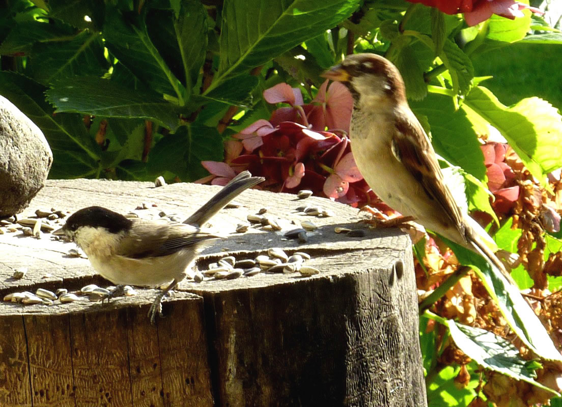 12.8.16 ....En Sünnenbloom warrt plünnert De lütten Meeschen kregen dat ganze Johr Foder bi mi. In de Hauptsaak weern dat Koorns vun de Sünnenblomen. De hacken de lütten Vagels mit den spitzen Snavel an den Rand vun de Foderampel twei. Oft geev dat Zank ünner de lütten Gäst, so dat de Feddern flögen. Jeedeen wull dat gröötste Koorn hebben. Dorbi full denn mal en Koorn över de Kant vun de Ampel an de Eer. In't Fröhjohr wussen dor denn Sünnenblomen. Dat duur twors en ganzen Stoot. Aver egentlich is ümmer tominningst een Sünnenbloom ranwussen. Un up de harrn de Meeschen en Oog smeten. Se harrn al richtig luurt. Wenn de Sünnenbloom ehr Blööt upmaakt haar, weern se glieks to Stell. Oftins weer de Last för de Blööt to groot un se böög ehr'n Kopp na ünnen. Dat maak de Meeschen nix ut, weern dat doch richtige Akrobaten.