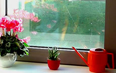 an't Finster transporteert. Up den witten Holtrahmen möök