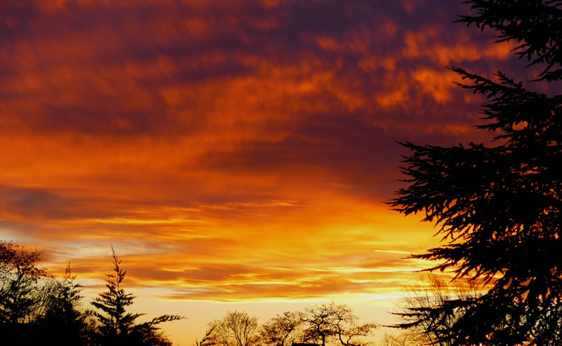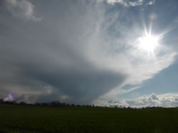Fröhstücken doot wi in de letzte Tiet jümmers buten up uns Terrass, de liggt na Süden to. Hüüt aver bleven wi lever binnen in de Köök, de liggt na Norden. Buten toov en dull Gewitter mit allens, wat dor so tohöört. Miteens stünn vör uns Kökenfinster dat Noordfinster! en riesengroot, füürroot Sünn. Se stünn mank uns Finster un Navers Appelboom. De echte Sünn kunn dat nich sien. To lieke Tiet geev dat enen urgewaltig Knall, en Dunnerslag. Ik heff luut upschriegt, so heff ik mi verfehrt. Man denn weer al allens vörbi, de Füürball weer verswunnen. Dat Phänomen harr nich veel Warms maakt; later weern dor keen Bläder verbrennt orr verkokelt. Wat dat weer, dat weet wi nich. Villicht en Kugelblitz? Anke Nissen