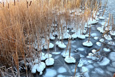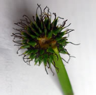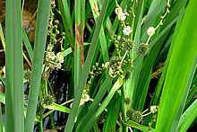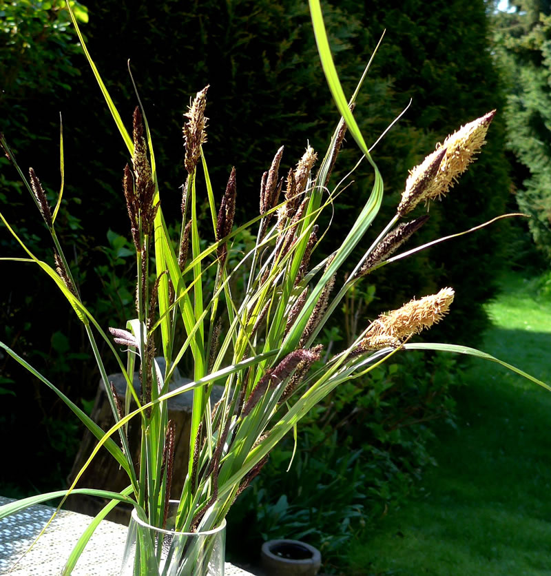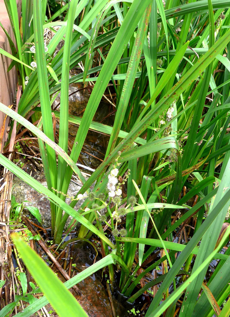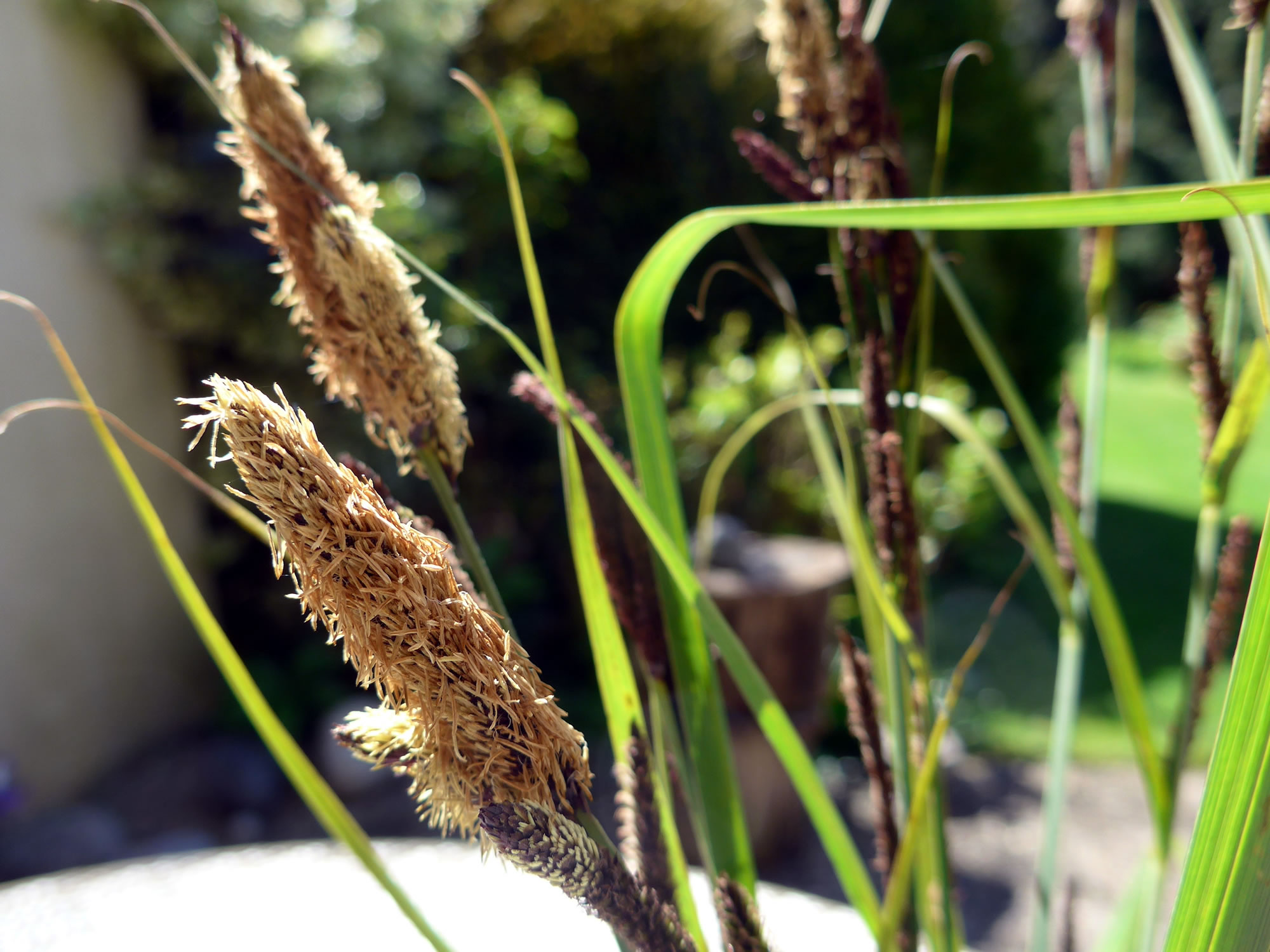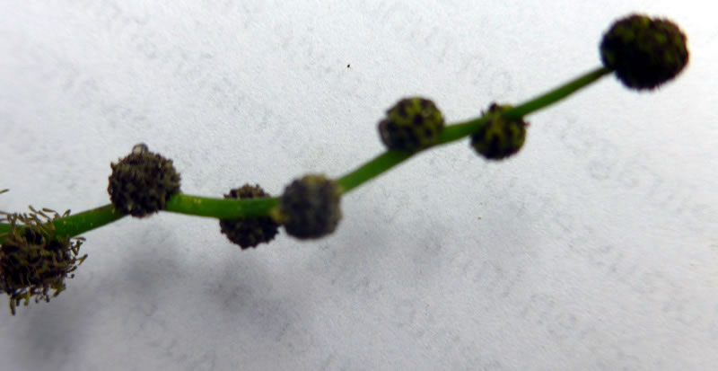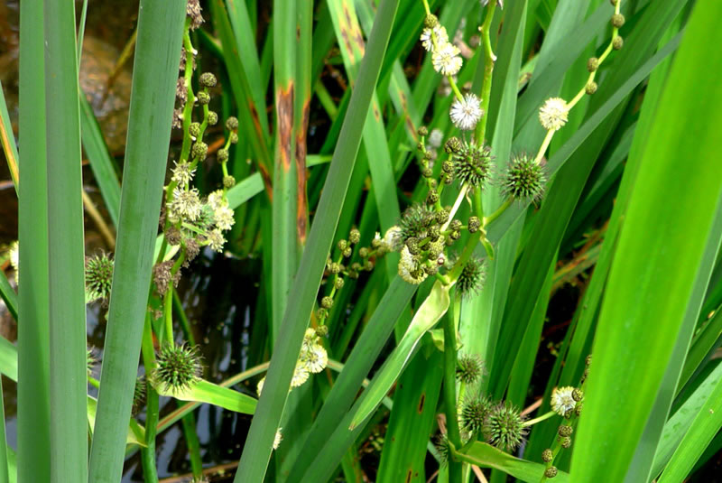 Ik harr aver en niege Plant entdeckt. Sehg meist as en Schilfrohr ut. Wi hebbt ümmer "Lampenputzer" oder "Kanonenputzer" dorto seggt. De Stengel vun de Plant sehg enen Pompesel liek. Luder runde Kugeln hüngen an de Telgen. Weer doch kloor, dat ik se anfaat heff. De Kugeln sehgen smuck ut, aver pieksen richtig. Dat sünd de Samenboller, se bünnelt luter lütte Samen to en stickelig Knäuel. In mien Plantenbook heff ik den Naam "Igelkolben" funnen. De Kugeln harrn ok richtige Stickeln as en Igel. Ik heff mi richtig freut, wedder en niege Plant kennen to lehrn. De Biller köönt Se per Klick