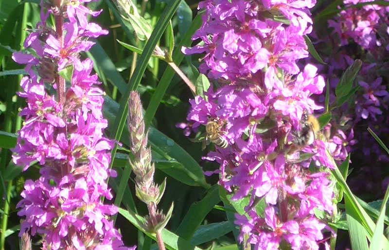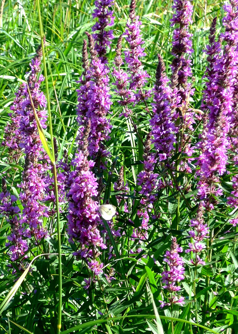 Den Wegrand smücken in Juli/August rosa un lila Bloom. Dat Lütte Weidenröschen un dat Schmalblättrige Weidenröschen stünnen an Rand vun de Beken. Besünners upfullen is mi dütt Johr de Blootweiderich. Kuum en anner Bloom smückt de Natuur so mit sien rosaroden Blödenähren. De Uferränner vun Dieks kregen dat Utsehn vun en Parklandschoop. De Wildstaude Blootweiderich hebbt de Goorners vereedelt. Siet de Tiet smückt de Blootweiderich ok uns Goorns un wi hebbt em geern. He warrd vun Snicken verschont. He wuchert nich. Kriggt keen Pilzkrankheiten un is en Ogenweid. Blööt vun Juli bit September. Kann en Höchde vun 1 ½ Meter kriegen. Is nich to översehn. För Bottervagels un Immen levert de Bloom Nektar un Pollen. Ik bin de Bloom in en feuchte Senke mank Brennetteln un anner hoge Gröönplanten vun mien Auto ut wies woorn. Anhollen un utstiegen weer eens. Dat weern ja schöne Bloom för mien Vaas. Mank de Bloom summ un brumm dat vun Hummeln un Immen. Üm mien Kopp gaukeln Bottervagels. In de Hauptsaak weern dat Ketelböter. Mit de witten Flünken heven de sik goot vun de rosalila Blöden af. Mit enen smucken Blomenstruß bin ik na Huus föhrt. De Vaas mit den Blootweiderich steiht up mien Terrassendisch. Dor heff ik denn de Blööt un de Staubgefäße ünnersöcht. De Blutweiderich is nich blots en smucke Plant, se is ok en Heelplant Neegst Johr plant ik se in mien Goorn. De Biller köönt Se per Klick