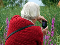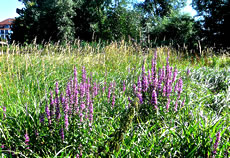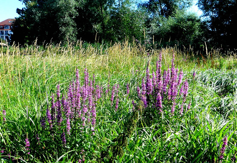 3.7.16 ....Avendspazeergang an den See Endlich weer de Regen vörbi. Dor lohn sik noch en lütten Gang up de Uferbrüch an den See. Ümmer wedder wöör ik wat Nieges wies. De Waterplanten weern düchtig ranwussen un harrn sik richtig breet maakt. Ganz besünners full de Blutweiderich up. De kreeg ok oft Besöök vun Bottervagels. Dat Schilf weer so hooch, kunnst kuum noch den See sehn. De Watervagels kunnst blots noch höörn.