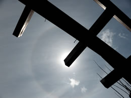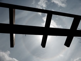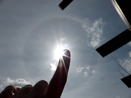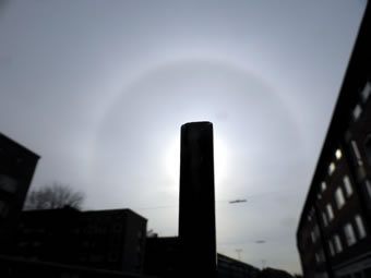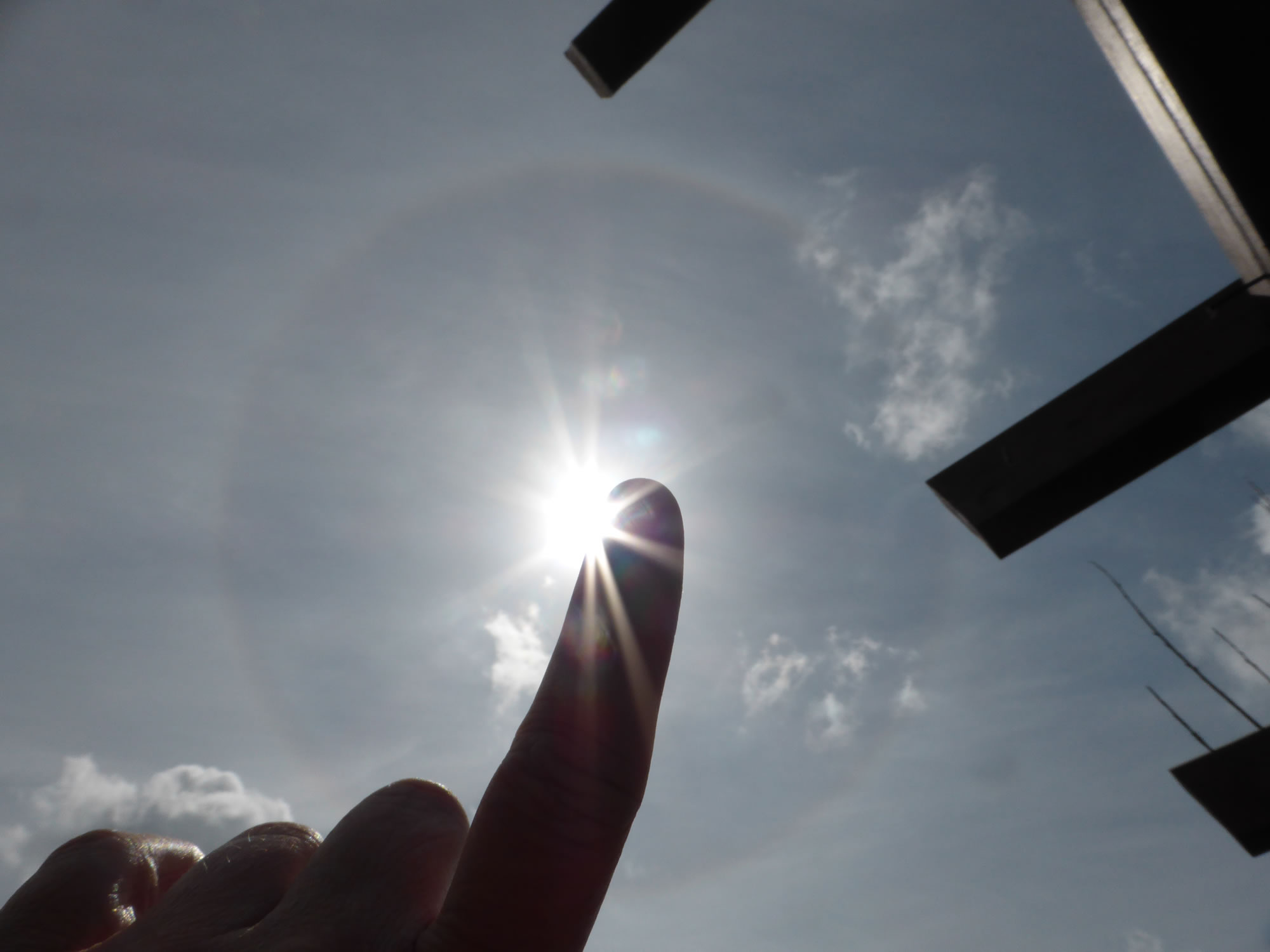 An düssen Middag harr de Sünn över Holsteen för korte Tied düssen schönen, avers heel flüchtigen Halo. Een kann an de Biller good sehn, woans dat Licht ut den Halo rutstreit warrt.