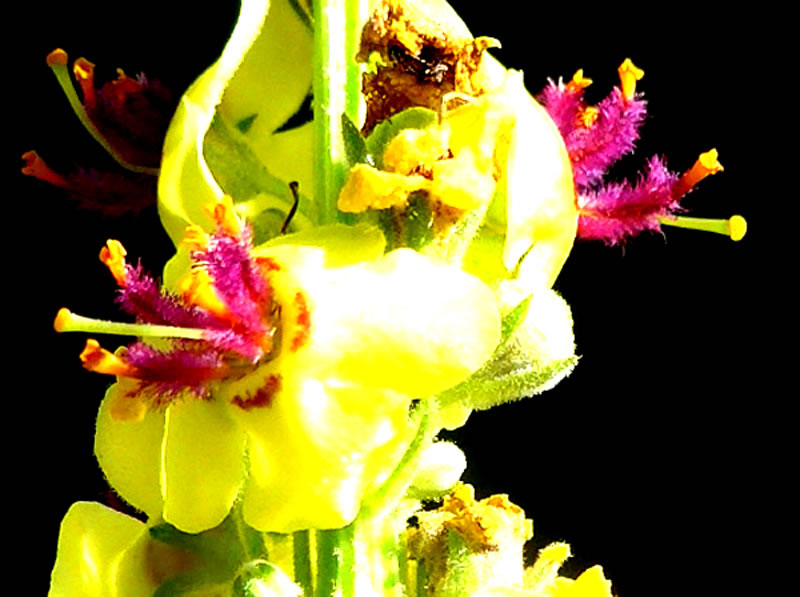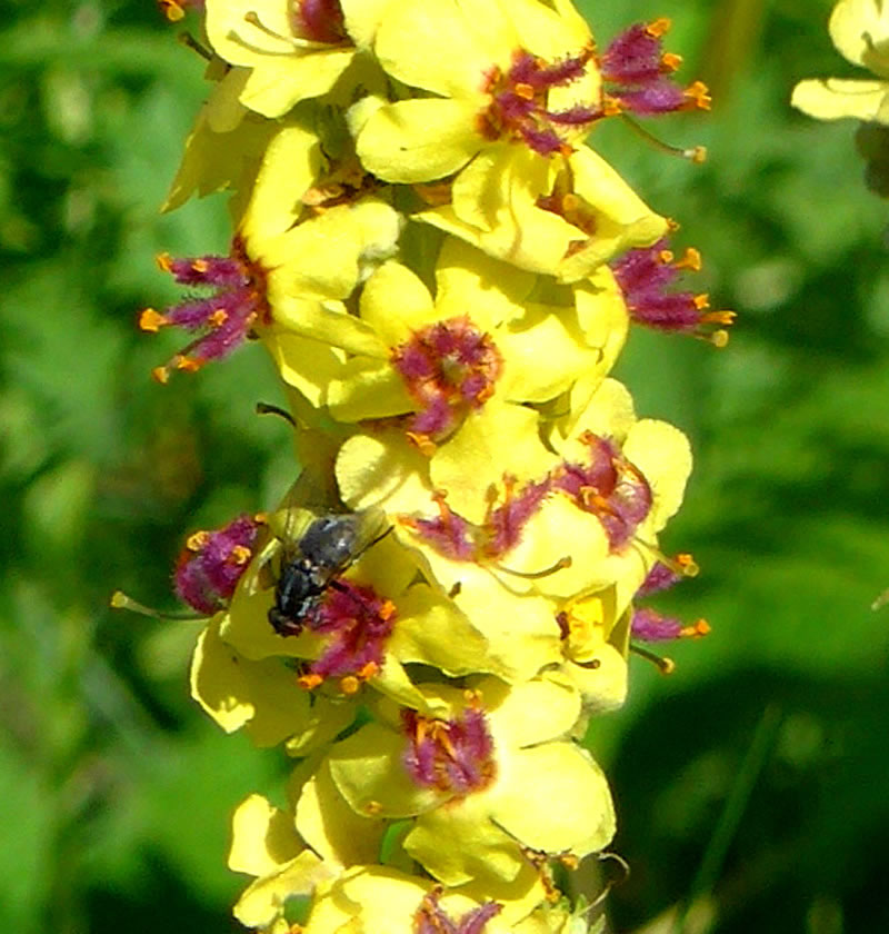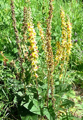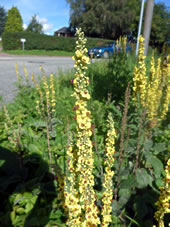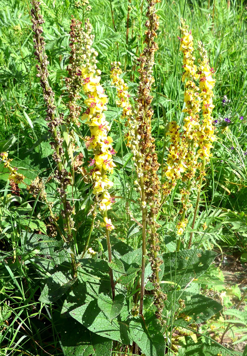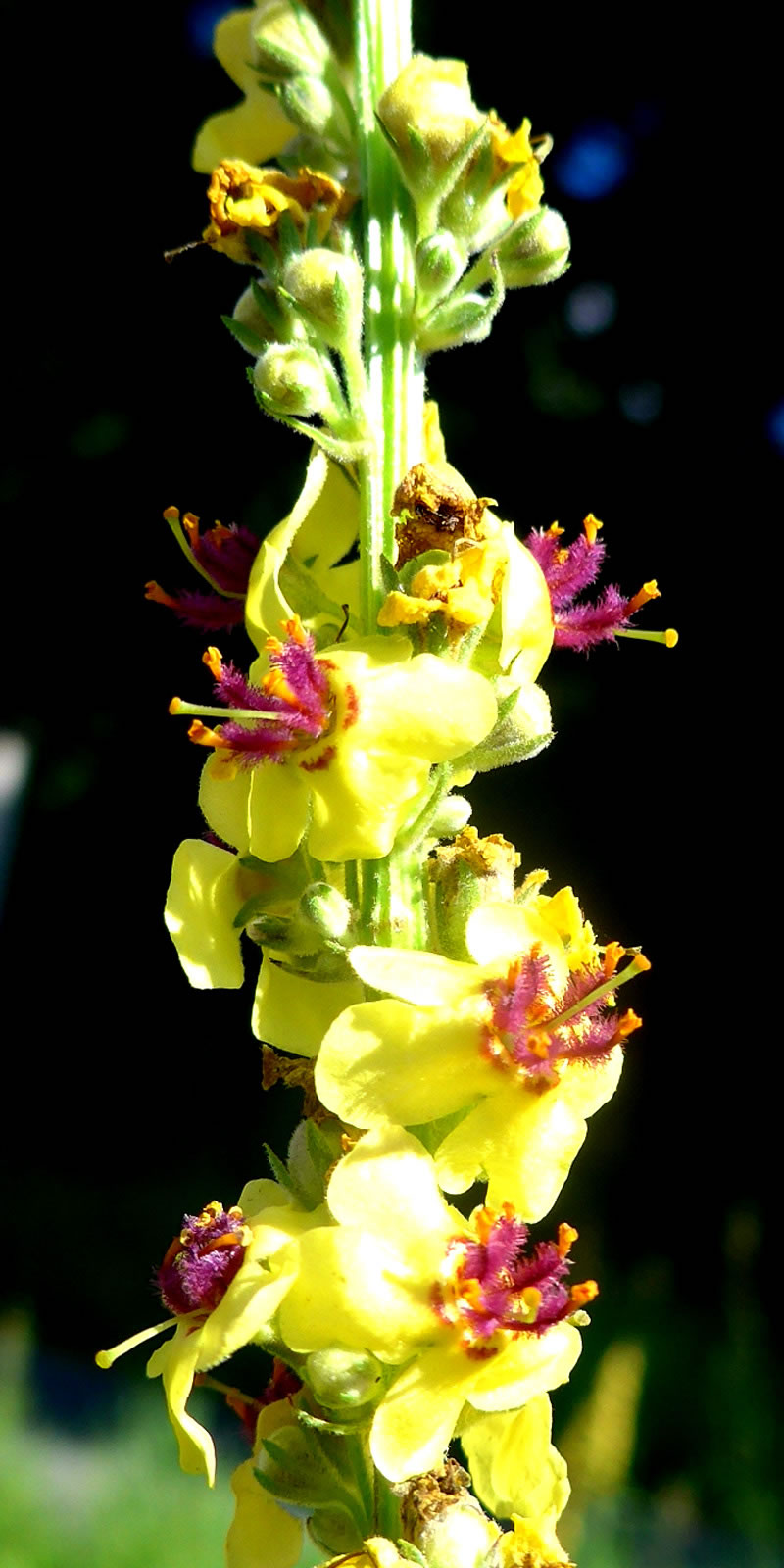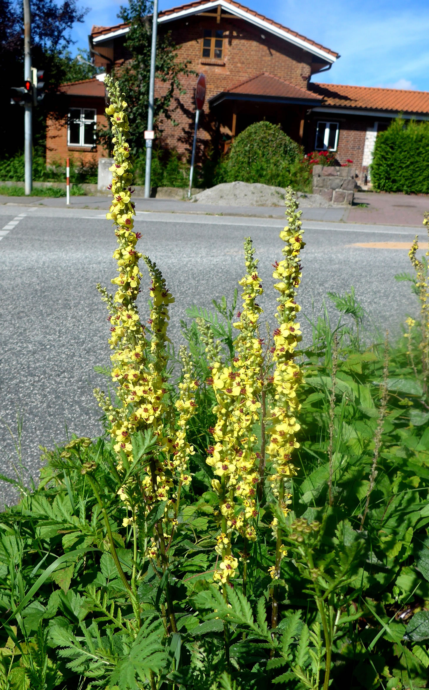 Kennen do ik de Bloom al lang. Heff mi ümmer över den Naam "Swatte Königskerz" wunnert. Egentlich blenkert se geel un sehg gor nich so düster ut. Up mien letzt Spazeerfohrt wöör ik up en Verkehrsinsel an Stratenrand en ganze Reeg vun düsse Blomen wies.Se nicken mi mit ehr gelen Blöden an en langen Stengel to, meist as wullen se mi den richtigen Weg wiesen. Dor müss ik doch mal anhollen un mi de Bloom wat genauer ankieken.Se weer sünst nich so oft to finnen.