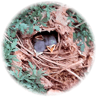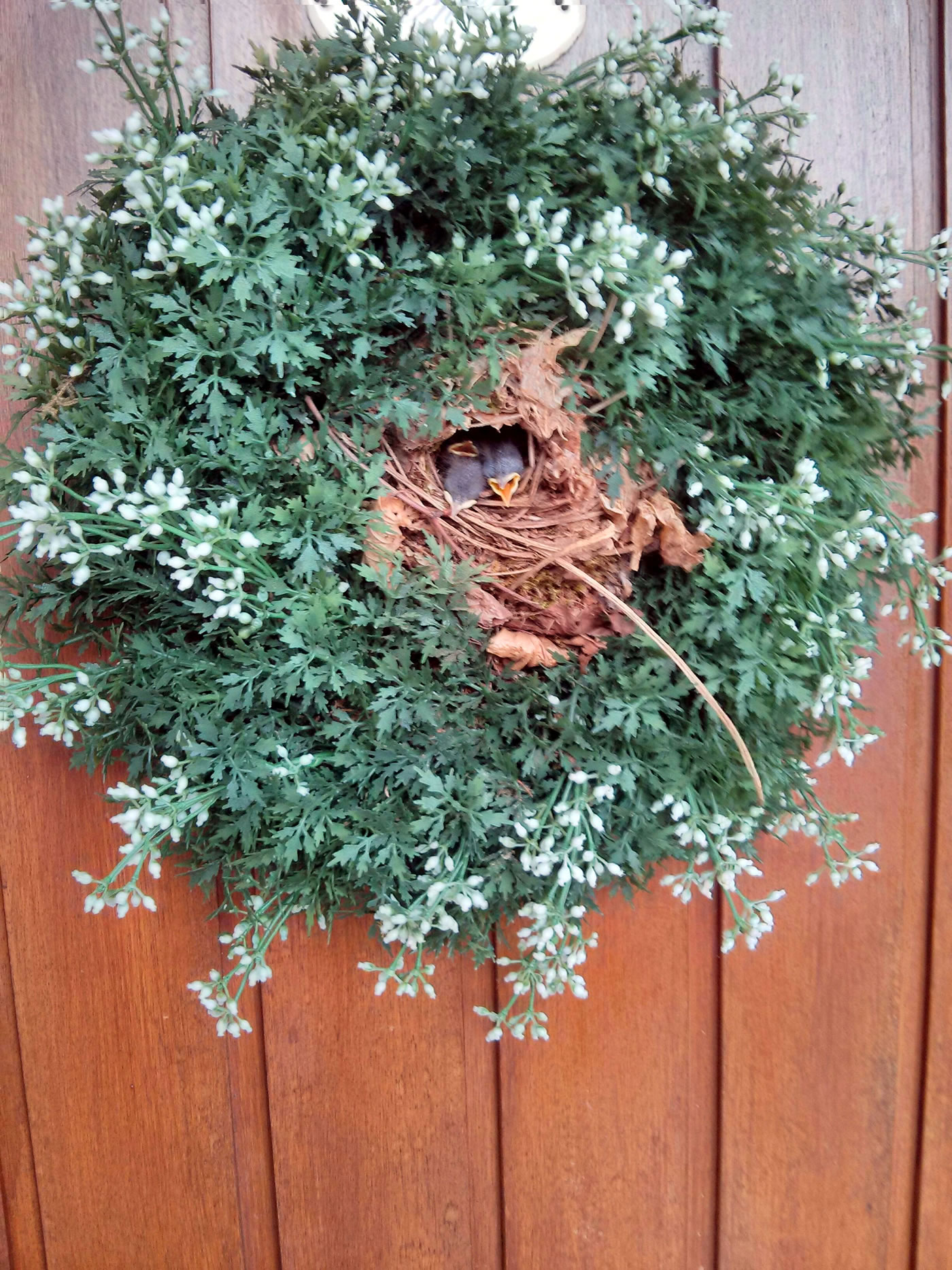Dat keem so: Wi harrn unsen Döörkranz vun Wiehnachten eenfach buten an de Huusdöör laten. Stöör ja nich. Enen goden Dag seggt mien Fru: "Du, kiek mal, wat stickt dor denn binnen?" Dor harr een so'n beten welk Loof un Gras in de Merrn rinstoppt! Na poor Daag weer dor en Nest vun woorn.