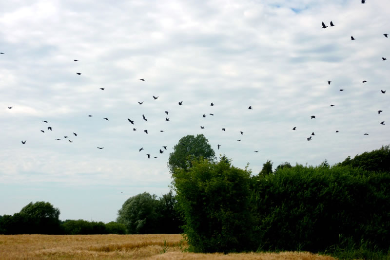 De Harvst mell sik an. De Kreih'n versammeln sik mit luut Kraah,