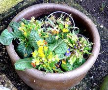 Dat gifft in unsen Goorn so veel Lütt-Tüügs, dat uns argert, dat wi dor gor nich geern hebben wüllt, dat wi wenn't geiht verdrieven wüllt. Ik erinner blots mal an de verdreihtlichen Nackt-Snicken. Gode Erfohren hebbt wi maakt mit de groten Rhabarber-Bläder. Wi leggt de up'n Rasen un dorünner sammelt sik würklich ganze Snicken-Sippschaften. Kannst de denn binah mit de Schüffel in'n Emmer sammeln. Hüüt kann een ja Schädlinge un Krankheiten goot mit chemisch Mittel to Liev gahn. Dat gifft aver ok allerhand Krüder, de sik dorför bruken laat. De Krüder kann een sülven sammeln orrer in de Afteek köpen. Arbeiden deit man mit Tee, Brühe, en kollen Uttoog orrer Jauche.
