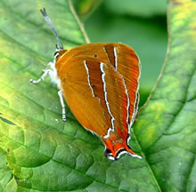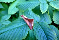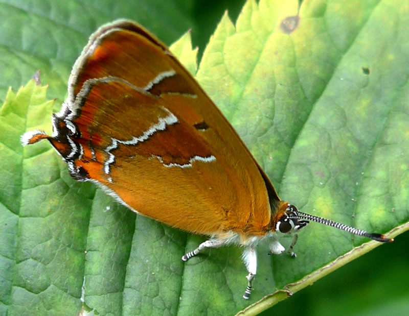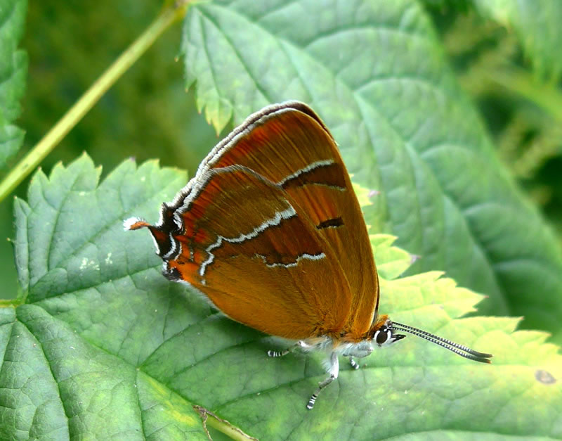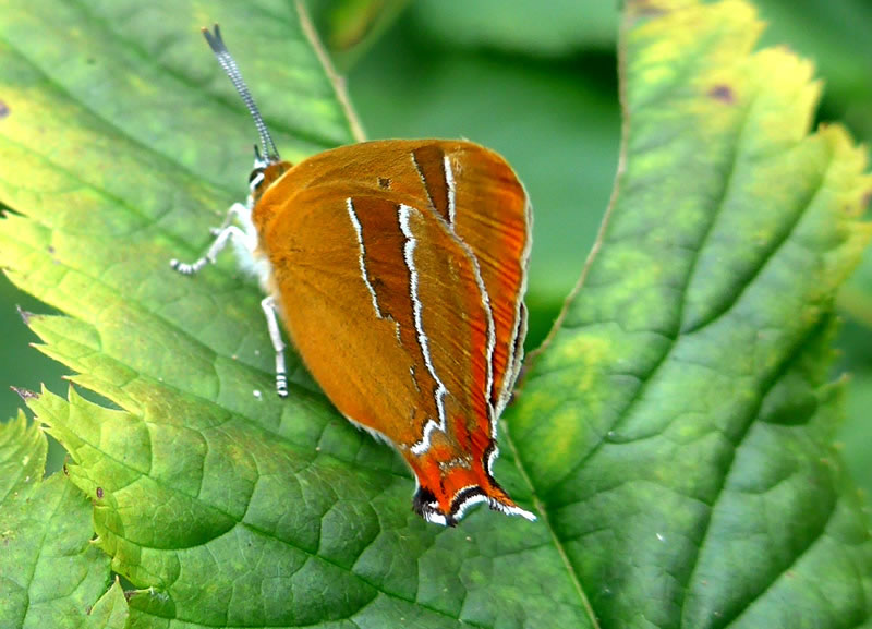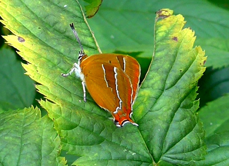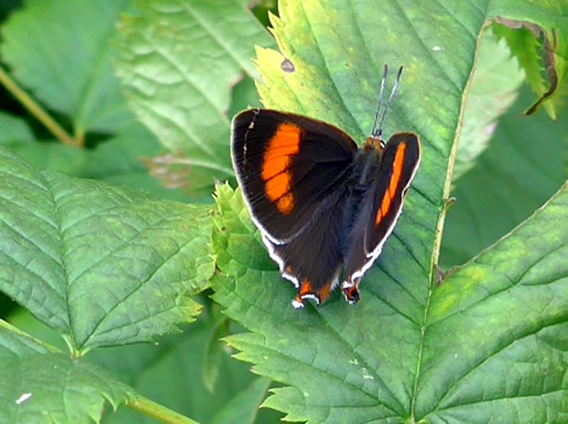 Wat liggt dor up dat gröne Blatt vun den Geißbort? Dat is doch en verdröögt Blatt. Sünd dat al de eersten Teken vun den Harvst? Kann doch nich angahn. Wi weern doch eerst in de Meern vun den August. Nu beweg sik dat Blatt. Dat harr twee Flünken. Maak nu de beiden Flünken uteenanner un zeig sien smuck Kleed. Dat weer en Bottervagel, denn ik noch nie in mien Goorn sehn heff.