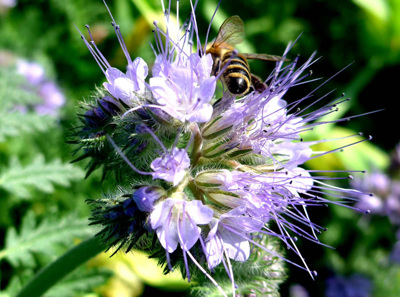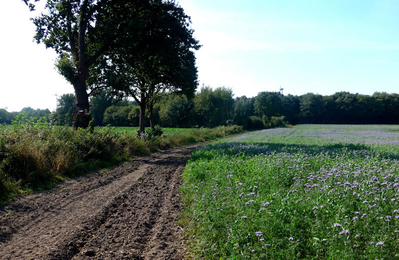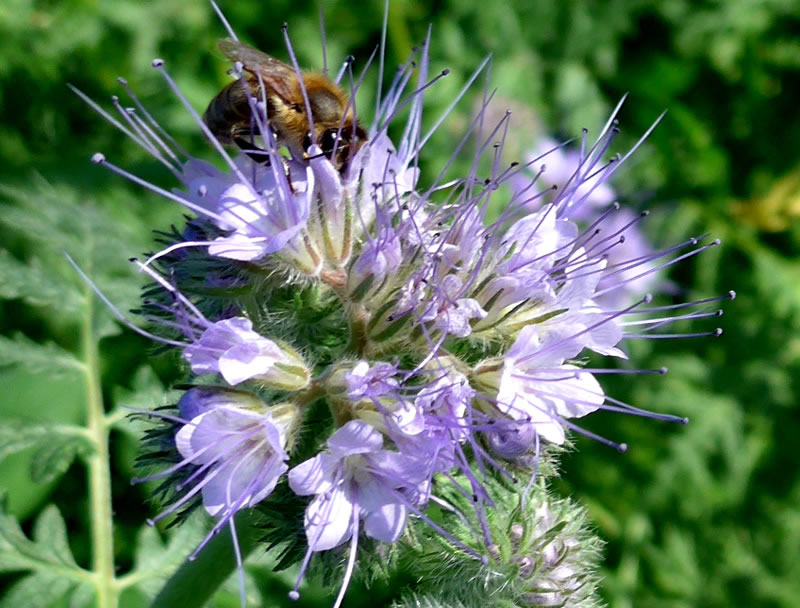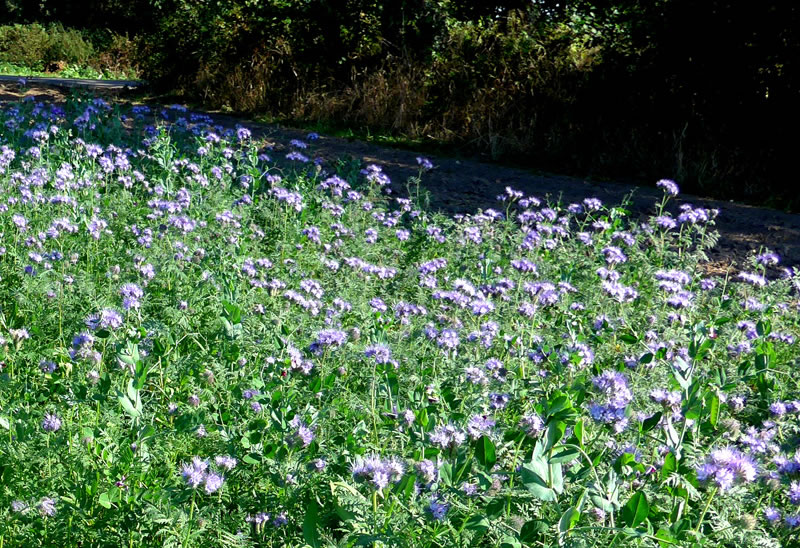 De Plant woor as Grööndünger anbuut, se woor ünnerplöögt. Aver bald geev dat nich mehr so vele blage Feller. Geev dat villicht Maleschen bi den Anbuu? To Huus harrn se anner Eer ünner de Fööt. Sehn heff ik in Harvst noch immer enkelte Planten mank dat Gröönfoder. In de "blage" un de "gele Tiet" bröchen de Imker ehr Immenvölker na de Feller mit de Planten. An Stratenrand kunnst den Honnig köpen. Aver de blagen Feller weern weniger woorn. Up mien letzte Utfohrt bin ik wohrhaftig wedder twee grote Feller mit Phacelia wies worrn. Ik heff mi richtig freut. Glieks bin ik utstegen. De söte Duft vun de Bloom steeg mi in de Nees. Un wat för smucke Blöden dat weern! De langen Stängel vun de Stoffgefäße geven ehr en ganz besünneres Utsehn. Se sehg meist kuschelig ut un harr dorüm wull ok den Naam "Büschelschöön"! Un vele Immen flögen üm se rüm. Ik kunn nich wedderstahn, ik heff mi enen schönen Struß plöckt. Wenn ik moorns de Trepp hindaal gaah, rüük ik al den söten Honnigduft. Wat schöön, dat düsse smucke Bloom för de Immen en Trachtlücke füllt! Dorto is se noch goot för den Bodden. Ok de Goorners hebbt ehr goot Utsehn mitkregen un plant se in uns Goorns an. De Biller köönt Se per Klick