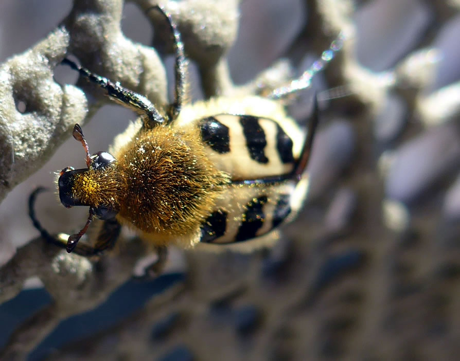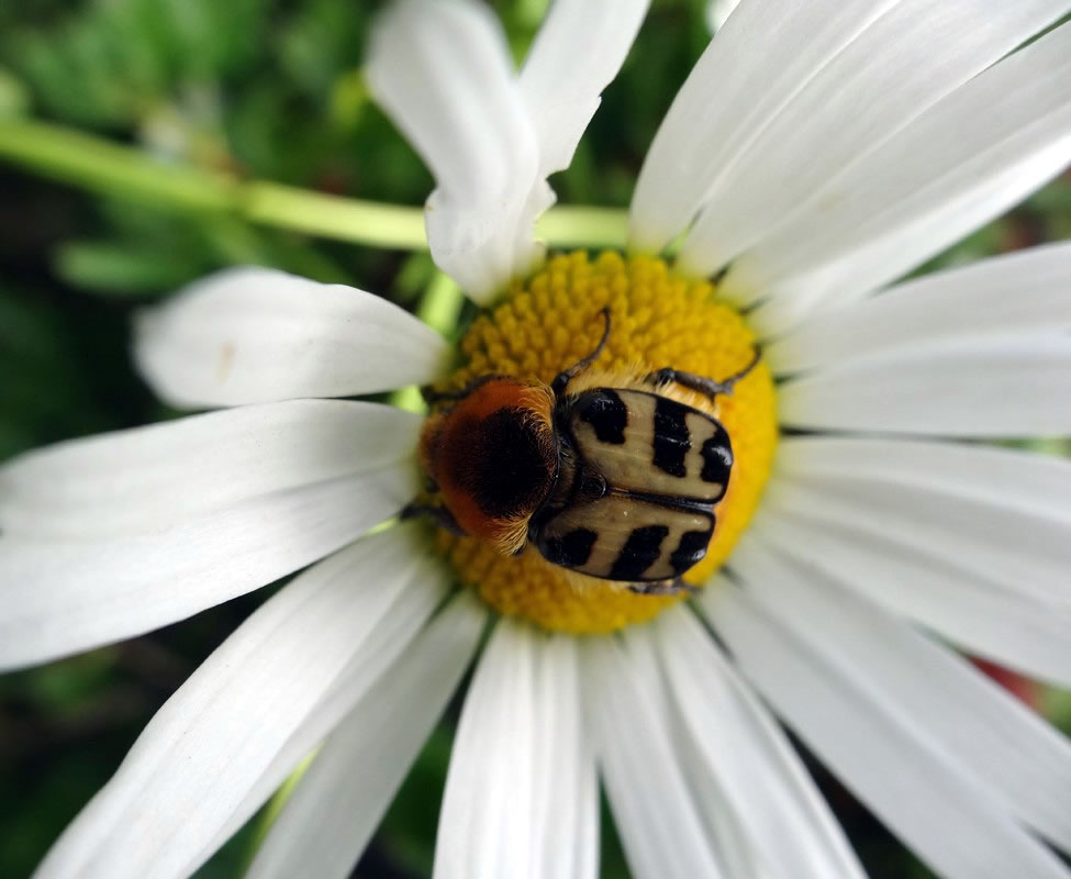 Se krallen sik mit ehr Fööt an de Bloom. Dat duur gor nich lang un in den Kopp vun de Bloom weer en groot Lock mank de Samenkoorns. Toletzt setten se sik satt up den Sünnenblomenrand.