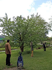 De Boom is empfindlich, leevt de Warms un blöht eerst in't Öller vun 10 bet 15 Johr. Hm, singuläre Aart ut China, witt, empfindlich, vigeliensche Foortplanten ik kann mi nich helpen, jichenswie erinnert mi dat allens an den Pandaboor. Is de Taschendookboom de Panda ünner de Planten? Fotos: Katja