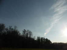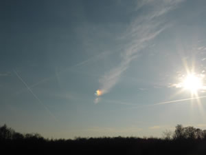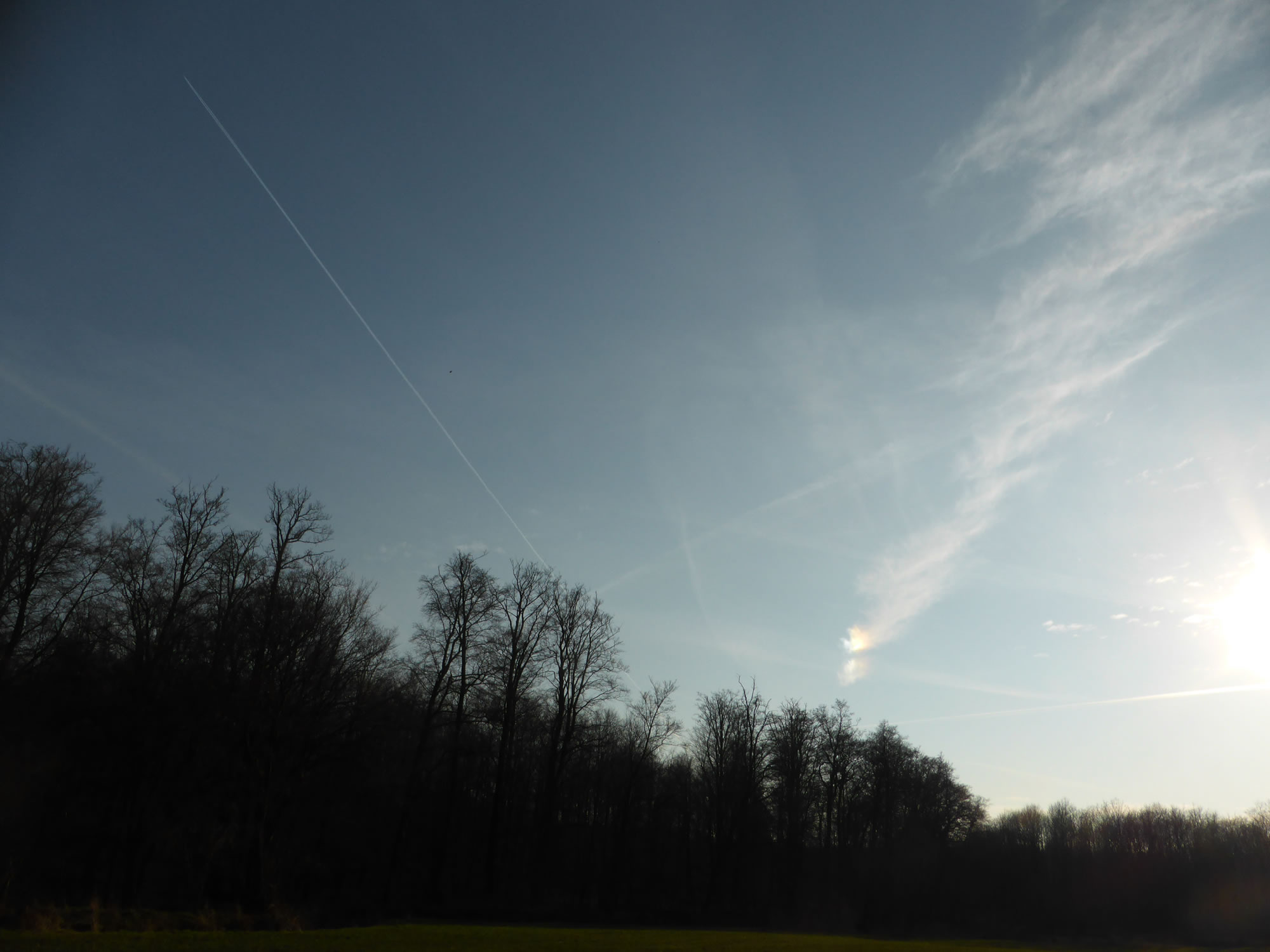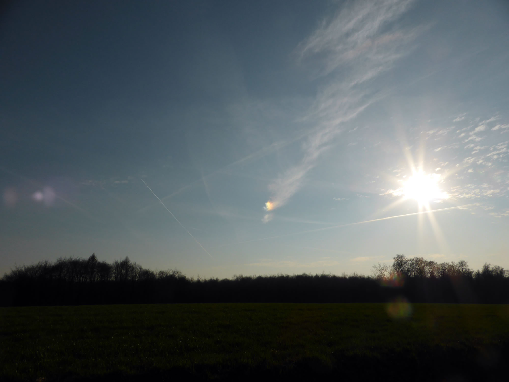 Ik leev ja besünners de Phänomene vun Sünnlicht un Ies, den Halo un allens dat. Un Nevensünnen heff ik al faken sehn ik "sammel" de, jümmers wenn dünne hoge Cirrus-Wulken den Heven as en Slier övertreckt, kiek ik na ehr ut. Avers doch nich an so en kloren Dag! Sowat heff ik noch nich beleevt. Wenn ik dor nu nich jüst henkeken harr...! De Biller köönt Se per Klick