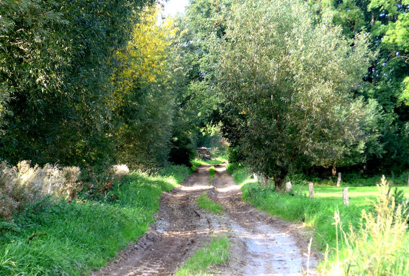 Wi müssen doch mal kieken, ob de Straat vun Harkensee na Nienhagen al breder maakt weer. Lütt Stück weer mit Ümleitung utschillert. Wi kunnen aver noch över de ole Brüüch vun de Katzbach föhrn. De weer total towussen. Un so güng uns Fohrt wieder na Steinbeck! Mien Besöök harr ik al veel vun Steinbeck