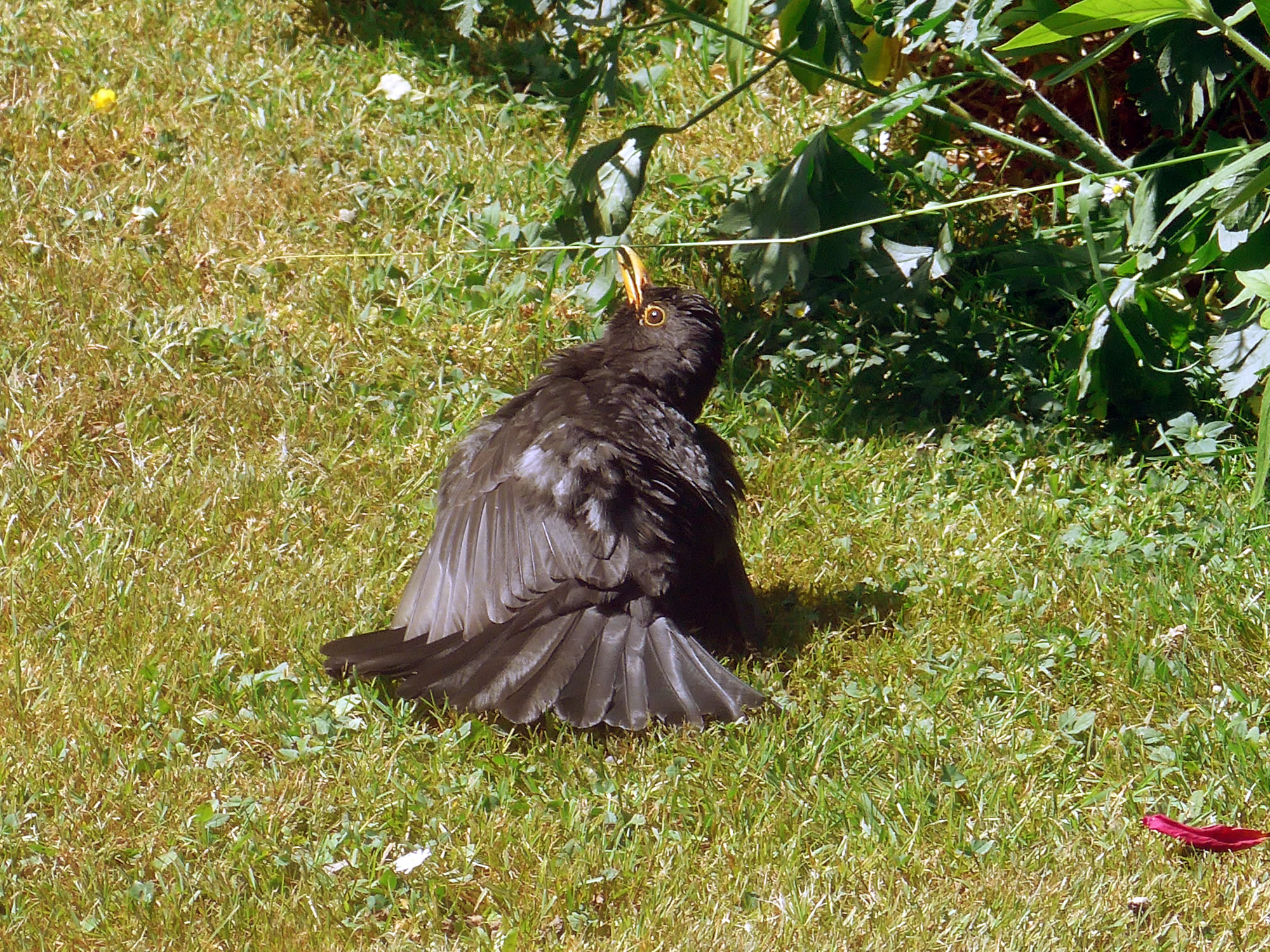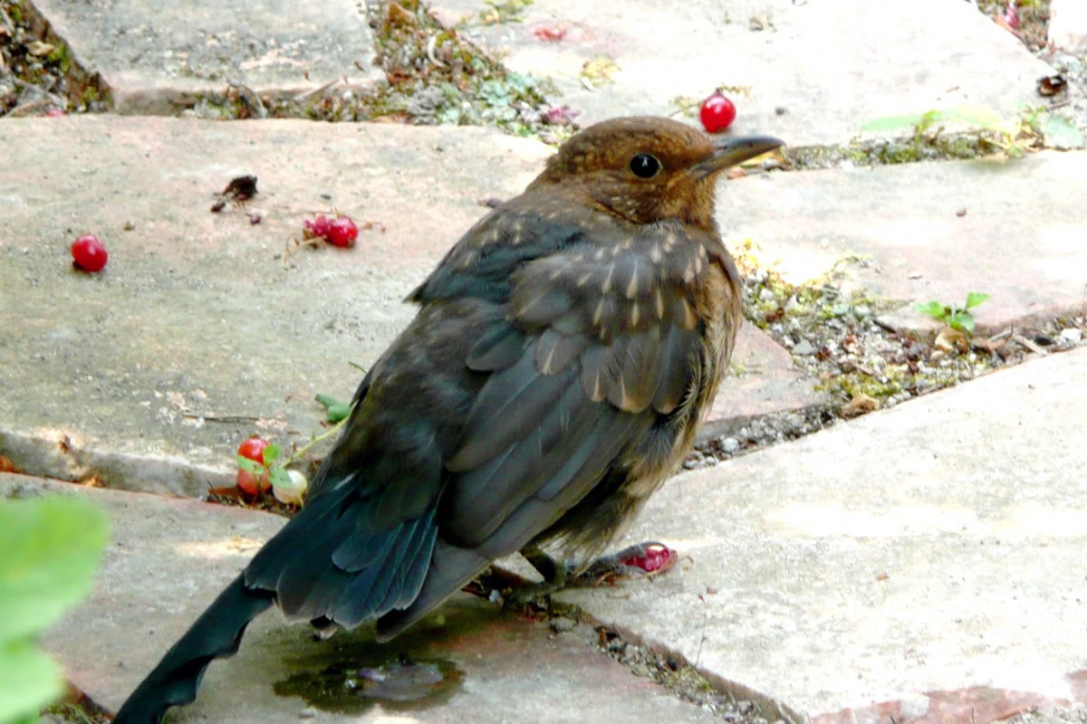 Bi de Goornarbeit verfolgt se mi regelrecht. To un to nüdelig, fladdert se mi üm de Fööt un sett sik in de Rhododendren rin. Wenn ik in'n Sommer wat graven orr harkt heff, sünd se ünner Garantie dor un kiekt, wat dor nich wat för ehr rutspringt meist as de Möwen op'n Acker. Un nu hebbt se ok nipp in't Oog, wenn ik Foder nalegg. "Lütt Broder is watching you"! Geern doch! Dat Bild köönt
