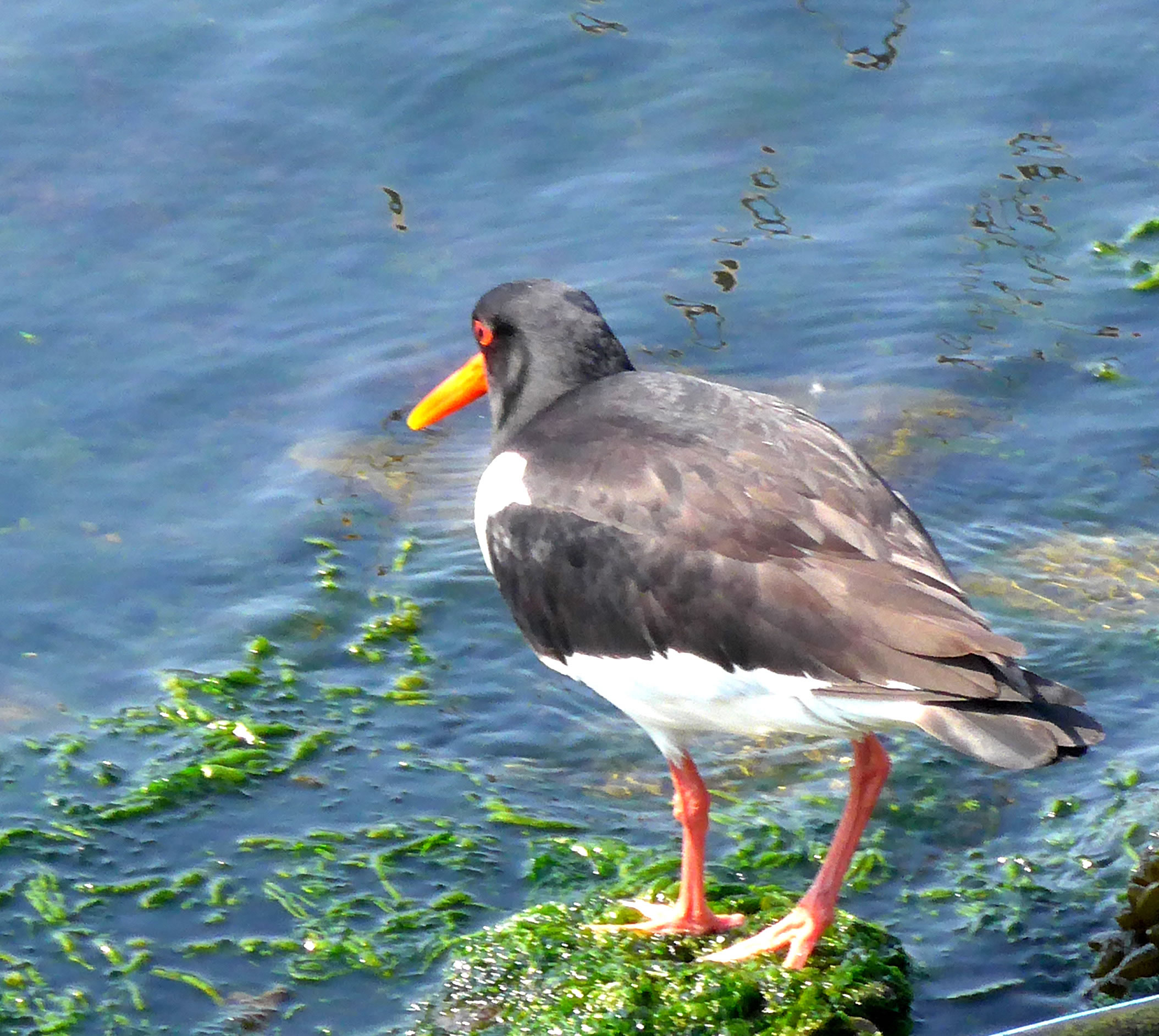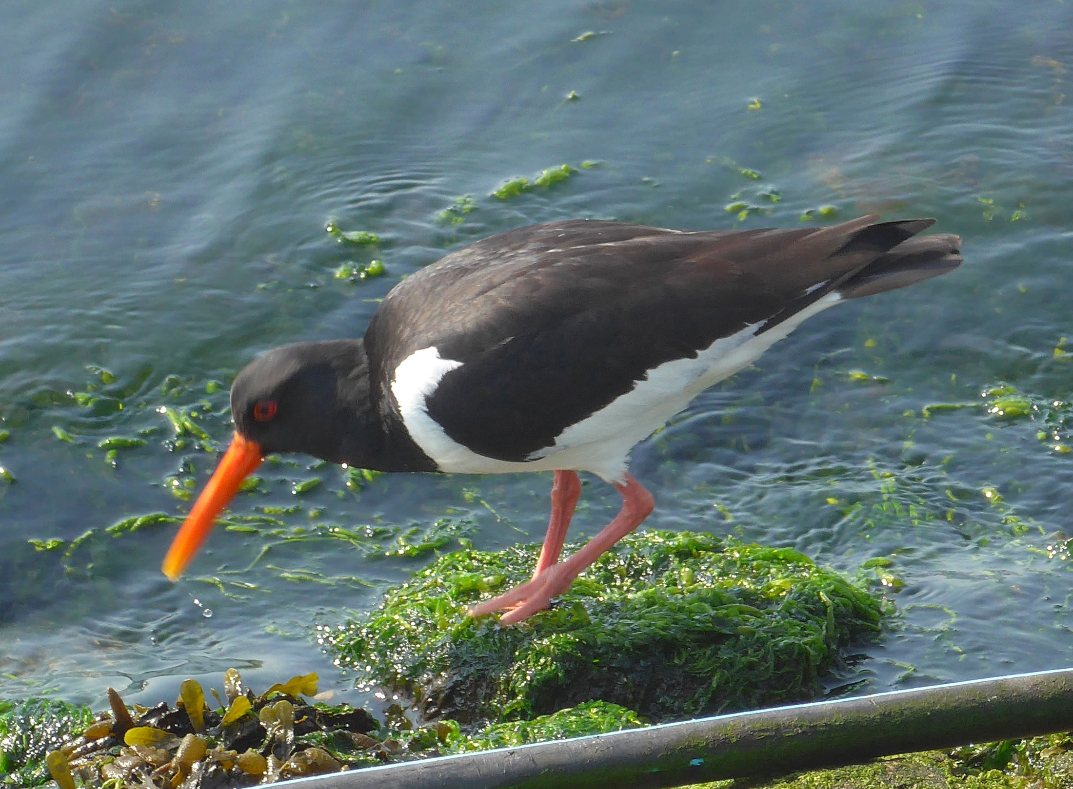 De Sünn stünn al teemlich deep. Aver mi trock dat noch na'n Yachthaven. De velen Besöker vun Pingsten weern verswunnen. Man kunn wedder de Watervagels bekieken. Dor wöör ik dicht an de Waterkant enen Austernfischer wies. He söch noch wat to'n Freten. Mit sien langen roten Snavel stocker he in dat Seegras rüm. Kunn aver nix finnen. Dreih mi al den Achtersteven to; aver sien Snavel weer leer. En ganze Tiet heff ik em tokeken. He harr aver keen Erfolg. Dor mutt ik moorn wedder herkamen! De Biller köönt Se per Klick