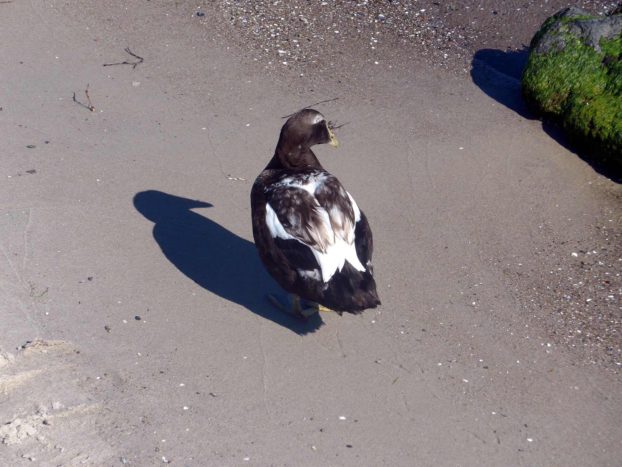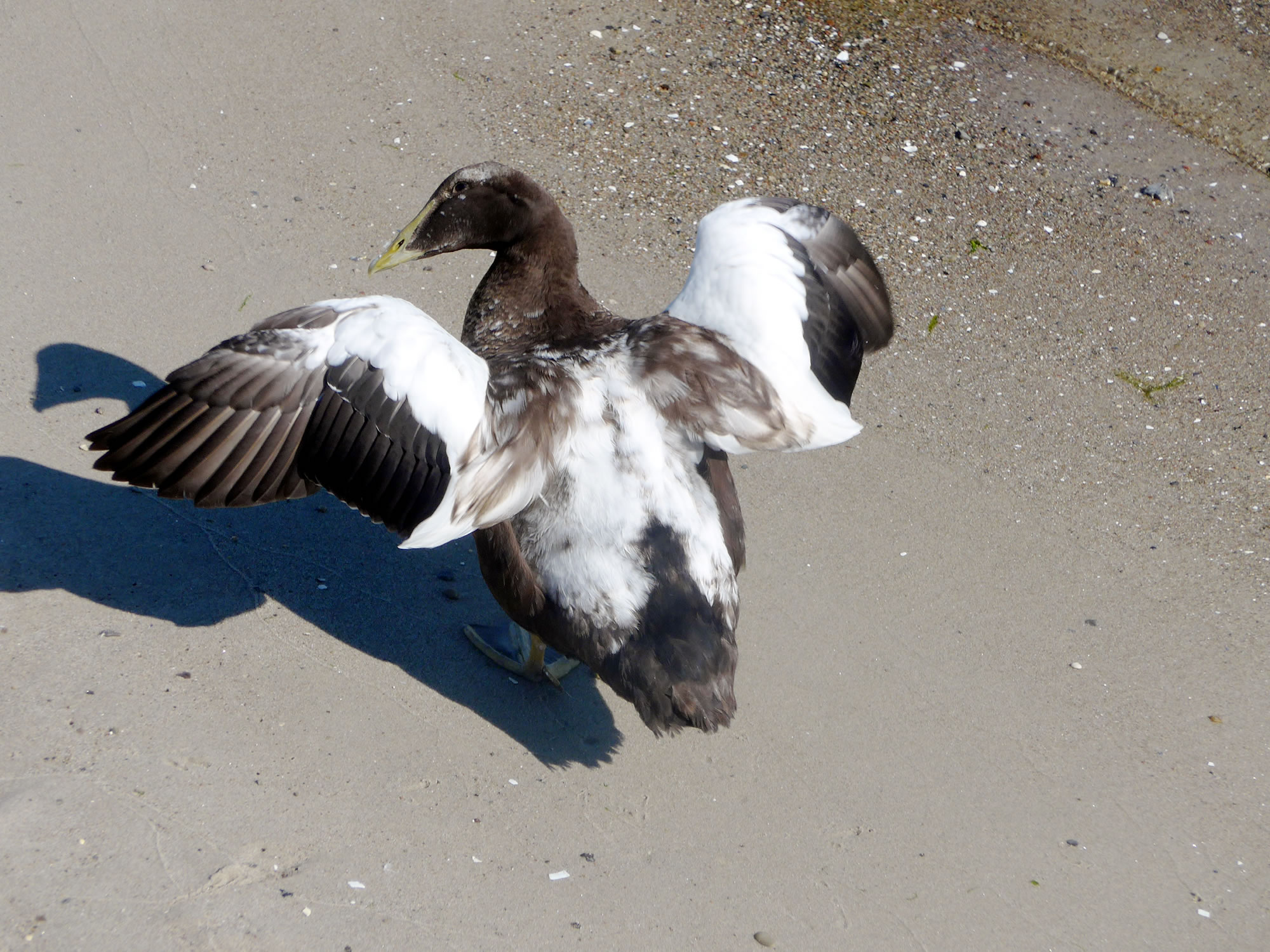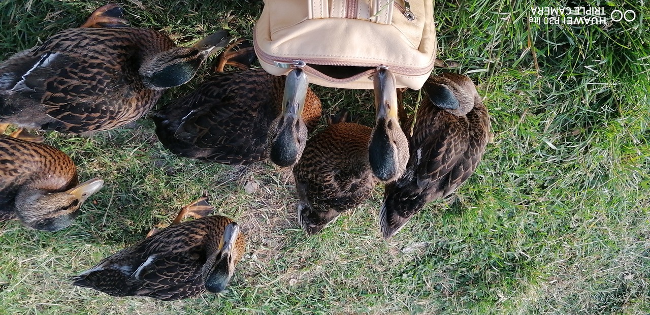 Un annerletzt bün ik op en Parkplatz düt Aantenpoor wies worrn: Se hebbt hier ehrn Privatparkplatz, aver wirklich so richtig privat! Dor leggt se sik ok dal. Bloots de Aanterich pliert noch so'n beten mit een Oog. Dor schall mal een kamen un sik truun, hier schnöde en Auto hentostelln! Dat truut sik ok keen. Ja, mit Aanten kannst jümmers wat beleven. Dat Bild köönt