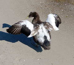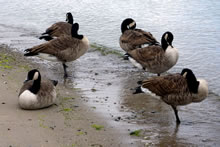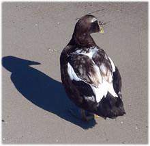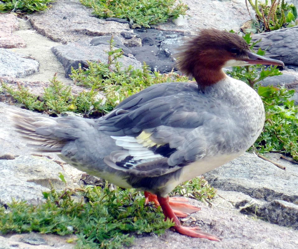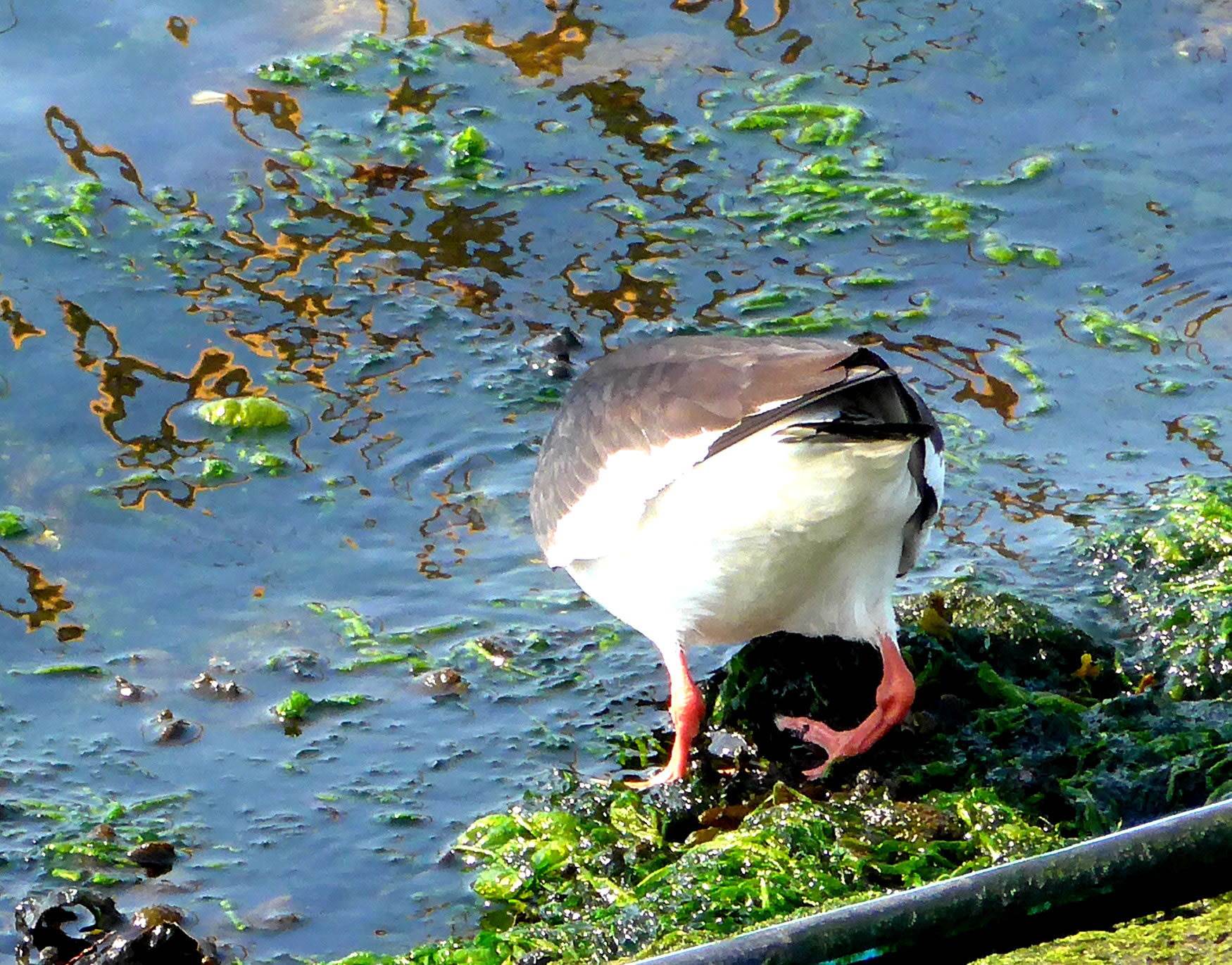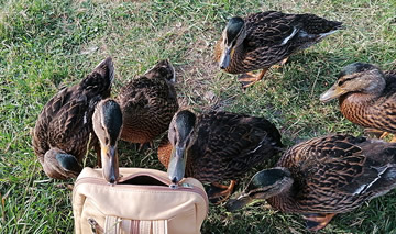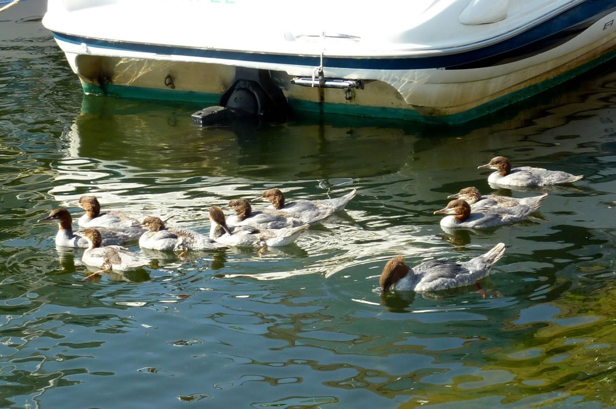 Un annerletzt bün ik op en Parkplatz düt Aantenpoor wies worrn: Se hebbt hier ehrn Privatparkplatz, aver wirklich so richtig privat! Dor leggt se sik ok dal. Bloots de Aanterich pliert noch so'n beten mit een Oog. Dor schall mal een kamen un sik truun, hier schnöde en Auto hentostelln! Dat truut sik ok keen. Ja, mit Aanten kannst jümmers wat beleven. Dat Bild köönt