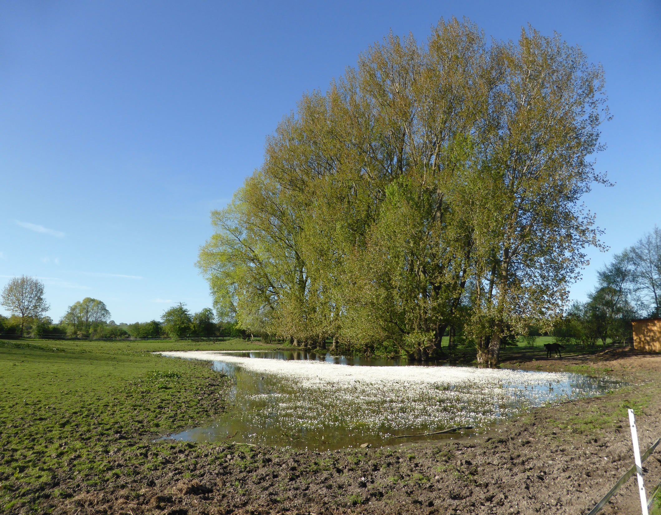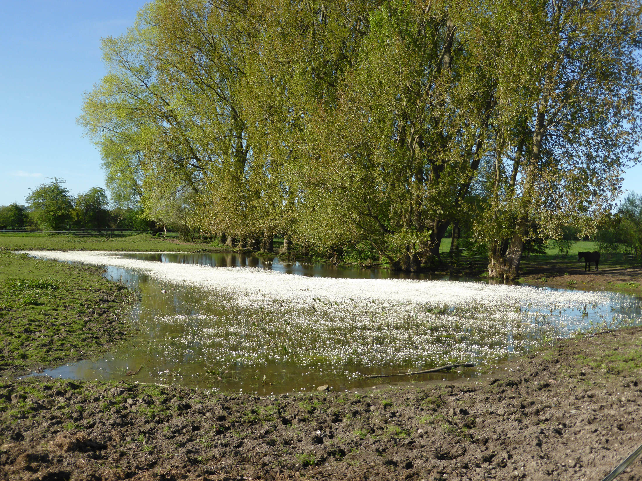 Jümmers noch staht mennig Wischen ünner Water, un mennig Watervagels verlusteert sik welig dor, as höör ehr de ganze Welt to. Bi Gnissau överswemmt de Traav de Wischen; mennig Strohballen versuupt in't Water. En lütt Moor bildt sik op de een Siet vun den Knick; hier steiht sachs faken dat Water. Süht trurig, troostlos ut. Avers achter de Kulissen deit sik wat! De eersten Bööm hebbt al so'n Schemer an Stamm un Telgen, so'n Gröön, dat kunn vun Moos stammen avers ok vun wat anners... De Biller köönt Se per Klick