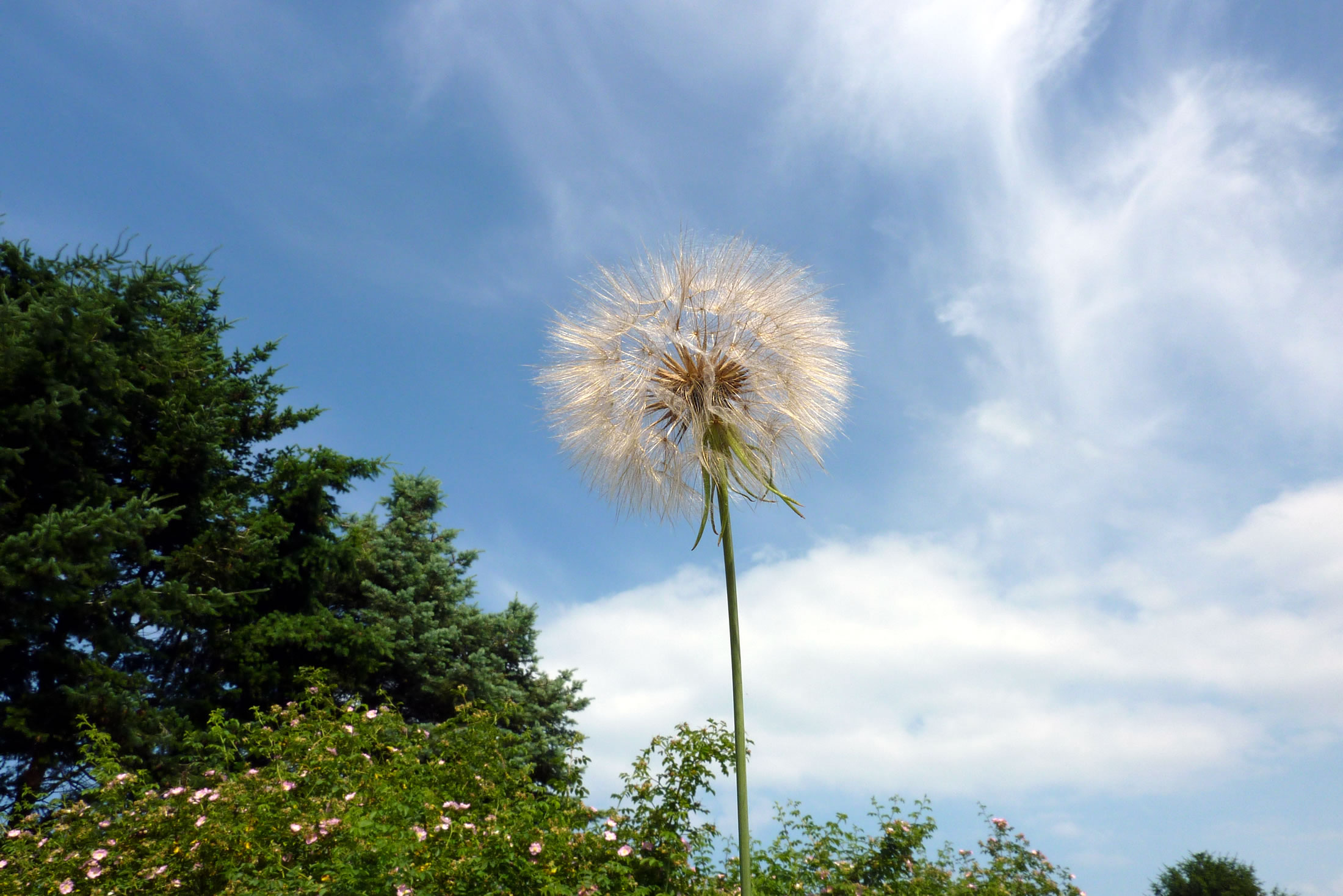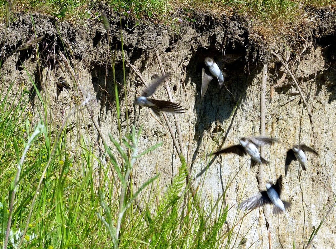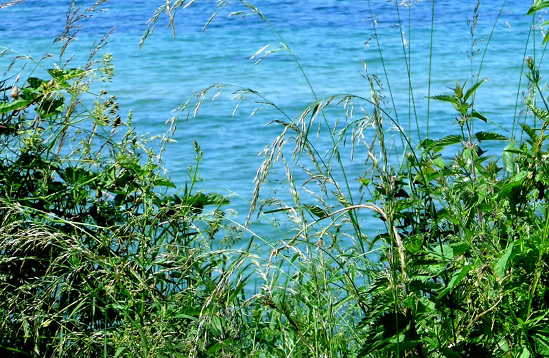 Up den Diek blöhn al de eersten gelen Diekrosen. Wi hebbt se ok Mummeln nöömt. Dat weer en ganz anner Bild as in Hoochsommer. Aver de Sommer keem al hooch, de Luft weer warm un de Bööm woorn gröön.
