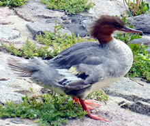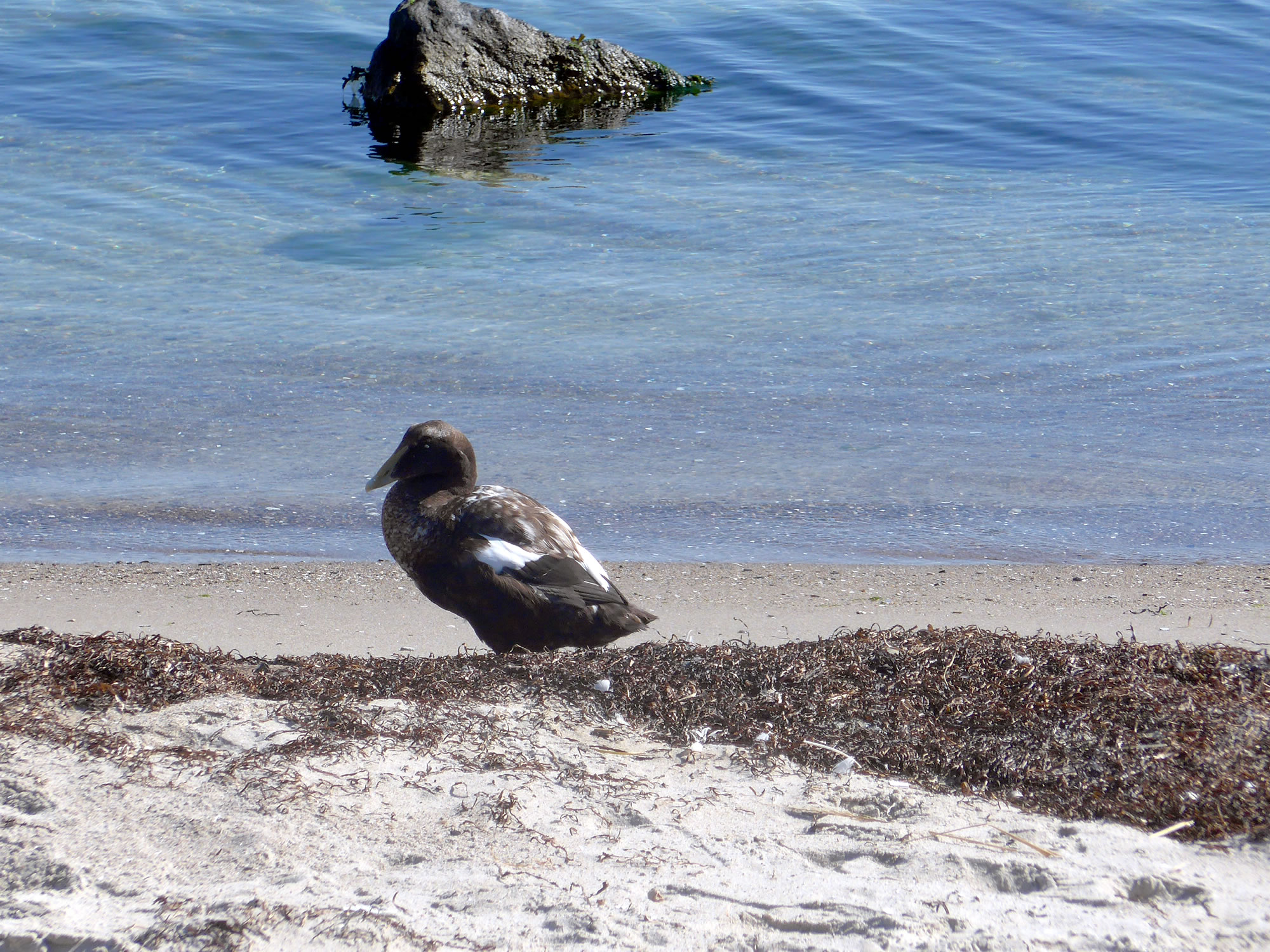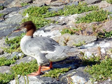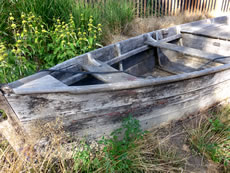 Nu müssen wi natüürlich ok noch up de Insel. As wi över den Steeg güngen, hebbt wi ut Versehn en Aant vun ehr Nest verjaagt. Acht Eier legen dor in en fien utpolstert Nest. De acht Lütten, de later sluppt sünd, hebbt wi leider nich sehn köönt. Aver de Diek hett uns wedder goot gefullen. Dat is rein to'n Wunnerwarken, wat Harald dor inricht hett! Wi weern wedder vertövert un freut uns al up den neegsten Besöök.