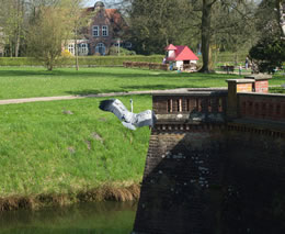 över en Footgängerbrüch vun de Aalbek. Swulken flögen