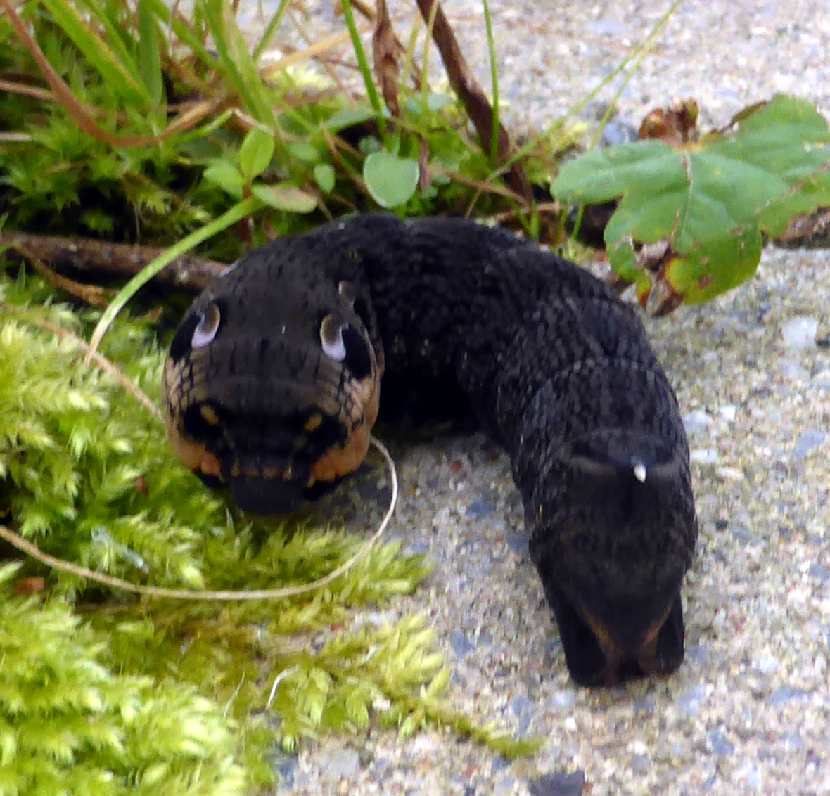 Nadrag: Nu heff ik vun stückerwat Lü seggt kregen, dat düsse Ruup mal en "Mittleren Wienschwärmer" warrt. En Falter. Wenn Se den Naam googelt un de Biller vun de Ruup vergliekt, warrt Se ok övertüügt ween. Nee, wat gifft dat doch för Deerten. Naja, de sünd ja nich afsichtlich so... so kurios. |