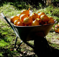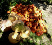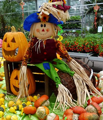Bi Opa up den Hoff legen överall veele Kürbisse rüm. Mit Schuuvkoor un Peerd un Wagen harr de Knecht se vun't Feld haalt. Nu müssen de Kürbisse noch drögen. Dorto kemen se in Omas warme Stuuv. In twee Daag is Halloween. Överall up Land warrt düsse Dag fiert, eensdeels as Reformaschoonsdag, annerdeels aver ok as Halloween, en Aart allgemeen Harvstfest sünnerlich för de Lütten. De Fierdag is vun de Druiden (Kelten) överlevert. Ut de Kürbisse wöörn grugelige Fratzen sneden. Dormit möken se de Minschen bang. Allerheiligen weer al lang för de Minschen en Fierdag. Jüst de Dag vör Allerheiligen liggt Halloween; ok sien Naam hett dat dorvun. Dütt Johr sünd mi besünners veel Kürbisse upfullen. Överall in de Gornereen legen se vör de Döör. Wenn dat düster warrt, treckt Kinner vun Huus to Huus. Kloppt an de Huusdöör un heischt na Koken un Sötes. Vörher hebbt se sik dat Gesicht swatt anmaalt orr sik grugelig Kostüme antüdert. So kannst se nich glieks kennen. De Biller köönt Se per Klick