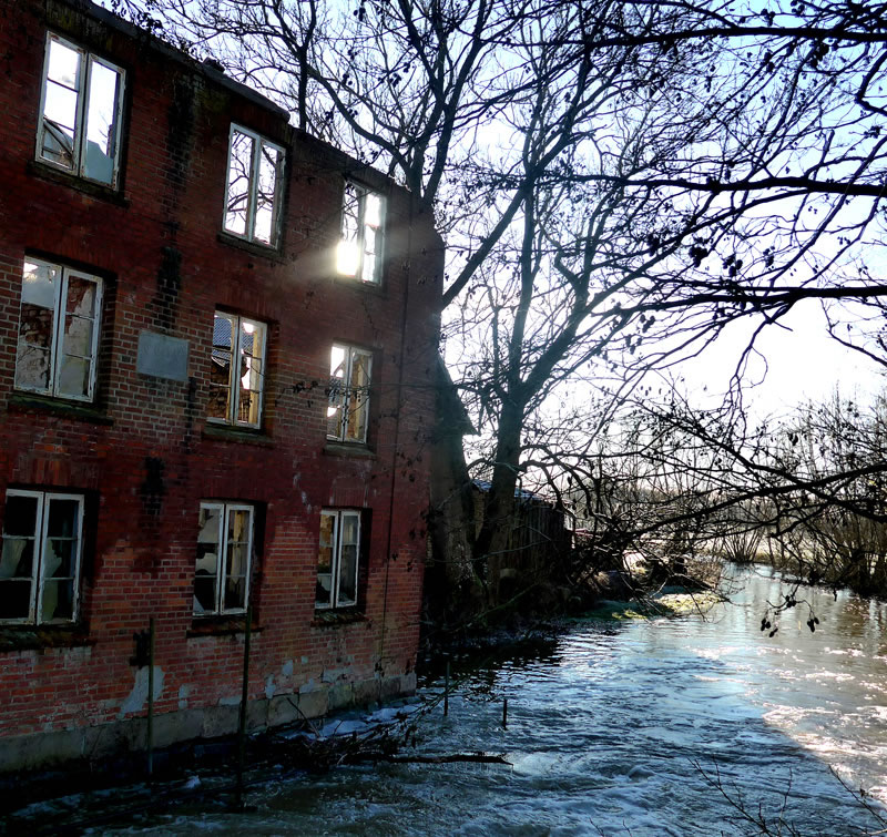 schien dörch de kaputten Finster. Dorbi weer de Möhl mal