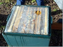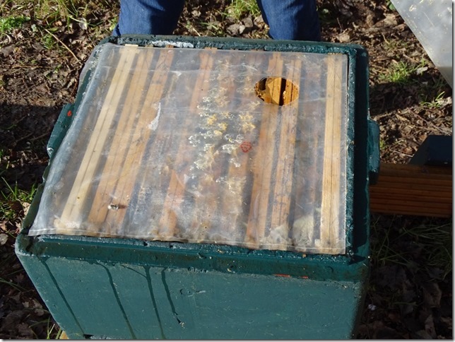 Wenn dat över 7°C warm warrt, fleegt de Immen al rut. Dat eerst, wat se maakt, is schietern. Se schiet nämlich bloots buten, den ganzen Winter verkniept se sik dat, un na de Winterroh hebbt se dat natüürlich all hild dormit. Se mööt ok frisch Water in den Stock bringen, de Königin to versorgen. De sitt binnen un will anfangen mit Eierleggen. Liekers is düt schöne kole Winterweder tücksch för Immen. Wenn de Küll jüm ünnerwegs to faat kriggt, verfreert se un köönt nich mehr na Huus. Immen köönt de Nacht sowiso nich buten ehrn Stock tobringen, veel minner in so'n Weder. Lever laat ik ehr noch beten ünner de Plane, bit dat Weder stetiger is. De Biller köönt Se per Klick