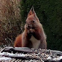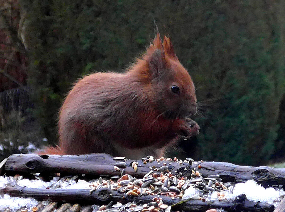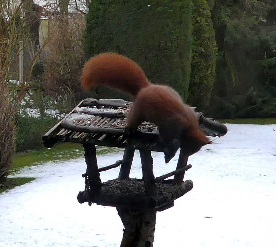 As ik aver mien Knipskassen achter dat Finster in Posituur bröch, hett he sik so verfehrt, ik kunn blots noch sien dicken roden Steert bewunnern. De Biller köönt Se per Klick