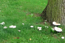 Den Dag besluut ik ümmer mit enen Rundgang dörch mien Goorn. Hüüt bin ik twee lütte Poggenstöhl wies worrn, lütte witte Champignons. Dor müss ik doch wieder uppassen, Villicht kemen dor noch mehr. Twee Daag later weern al ganz veel ut de Eer braken! Dat weer ja all en richtige Mahltiet. Gau haal ik mi en lütte Schöttel un plück de Poggenstöhl. Stolz wies ik se mi Mann. "Hüüt giff dat en godes Meddageten!" Mien Mann keek sik de Poggenstöhl scharp an: "Sünd de ok echt?" "Ja, dat sind Champignons. Kiek mal de rosa Lamellen!" Ik möök mi an de Arbeit un heff se putzt. Denn kemen se in de Pann. Dor steeg mi en egenordigen Ruuch in de Nääs. Sulln dat doch kene echten Champignons ween? Denn keem mien Mann in de Köök. "Segg mal de Champignons rüük aver komisch. Dat rüükt hier ja na Karbol!" Ik röög de Champignons nochmal üm. Dor kreeg ik ok den Ruuch vun Karbol in de Nääs. Weer ik doch noch wedder up de falschen Champignons, up de Karbol-Champignons rinnfullen! Dat weer mi vör eenige Johrn al mal passeert. Gau heff ik de Pann sauber maakt. Dat weer gor nich so eenfach. Achterna heff ik de Pann up de Terrass stellt. Uns lekere Pilzmahltiet weer in't Water fullen. De Biller köönt Se per Klick