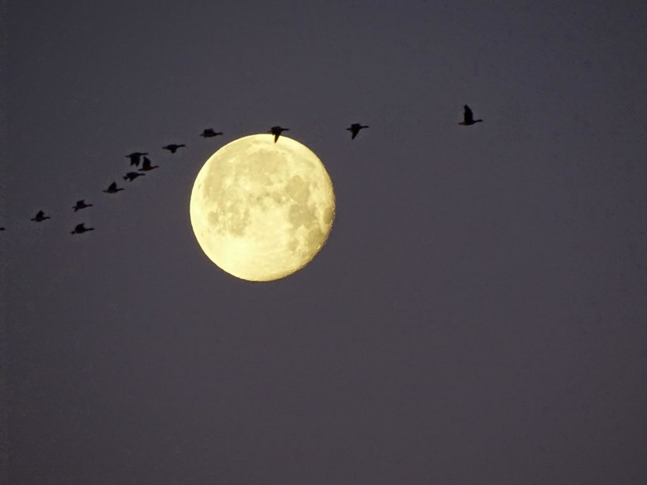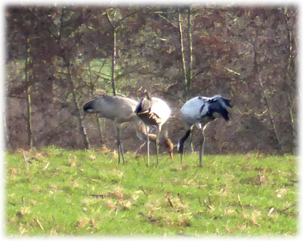 De Kraunen weet dat avers sachs nich. Düsse hellen Daag mit dat merklich längere Daglicht hebbt wat in ehr utlööst, en kregel Unroh, dat süht ut, as wullen welk anfangen to danzen. Wieldes geiht de Vullmaan över de Dörpen op. Kriegt wi en langen Winter orr is düt al Lent? Dat is as in en Land twüschen de Welten as in en Märken. Marlou Lessing