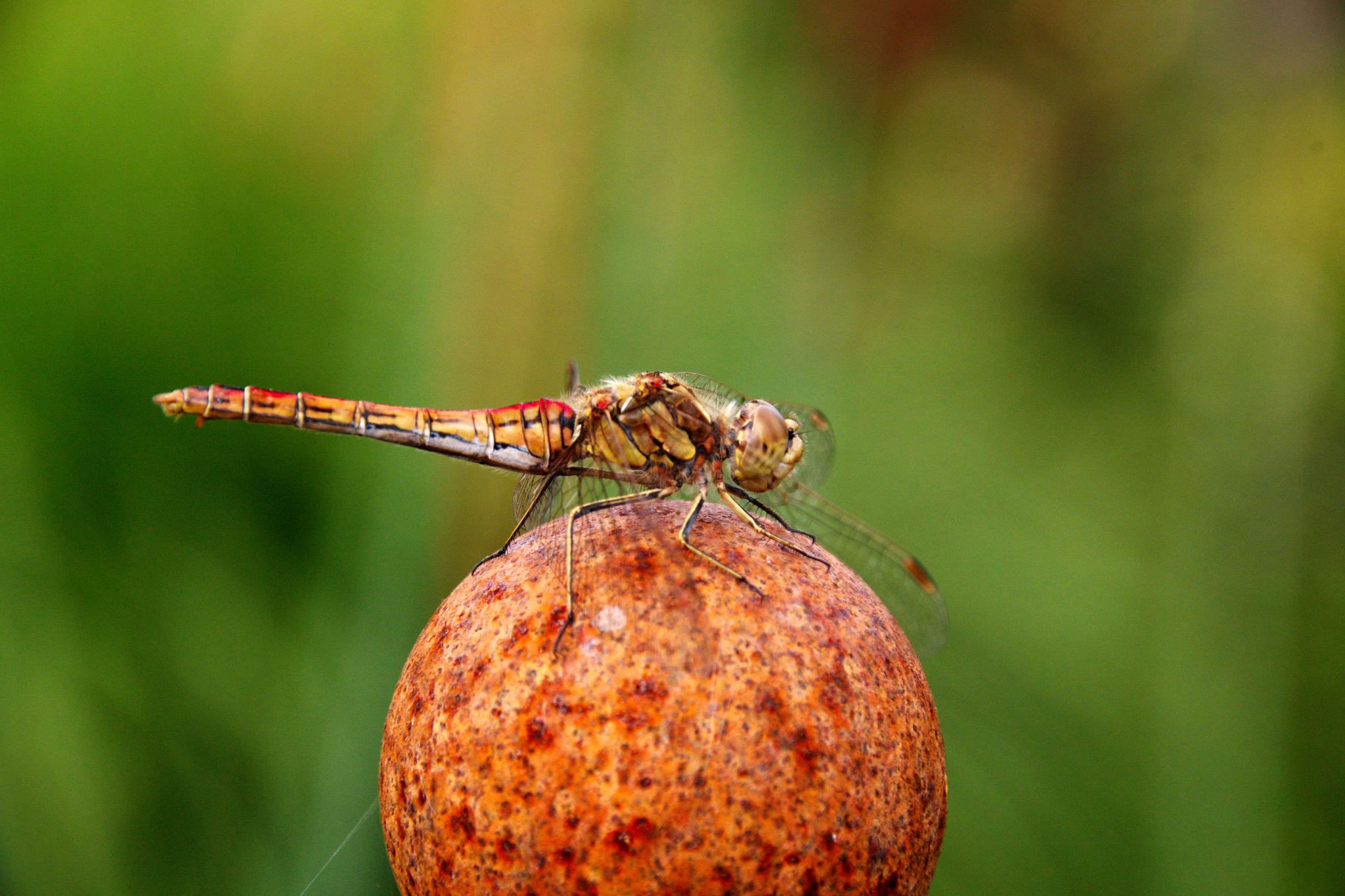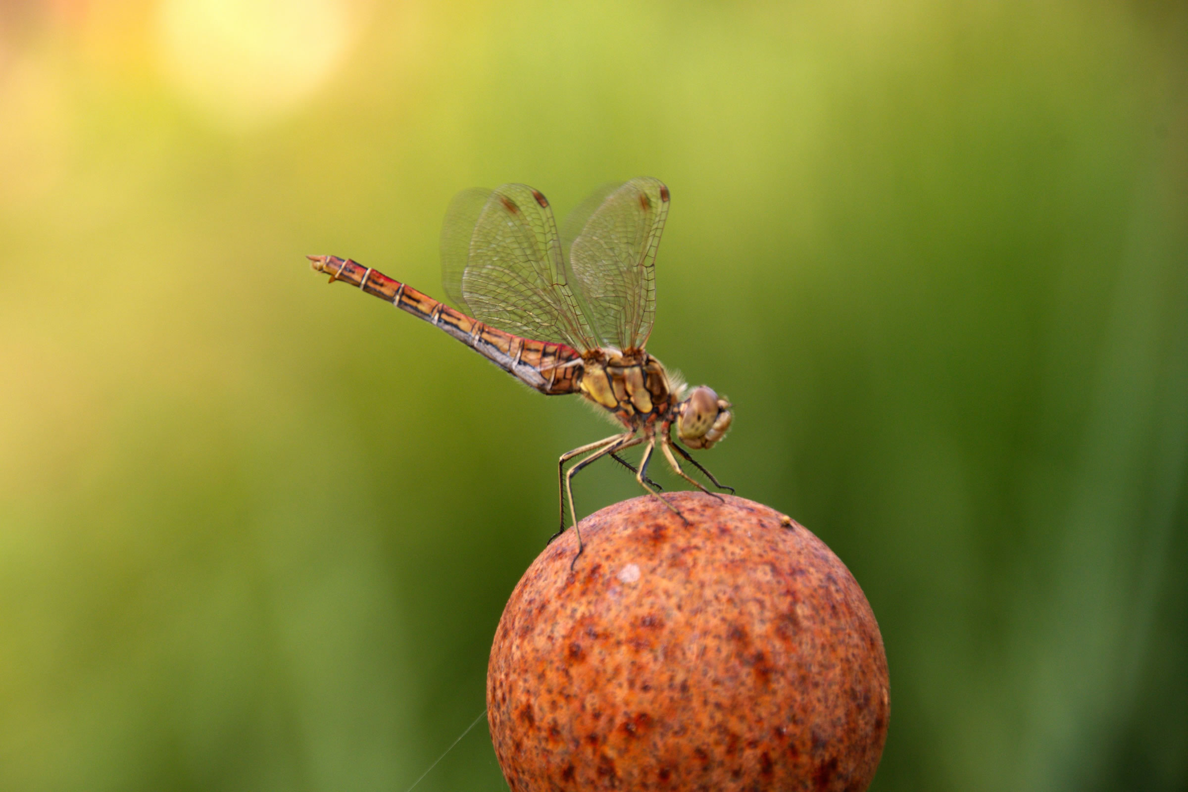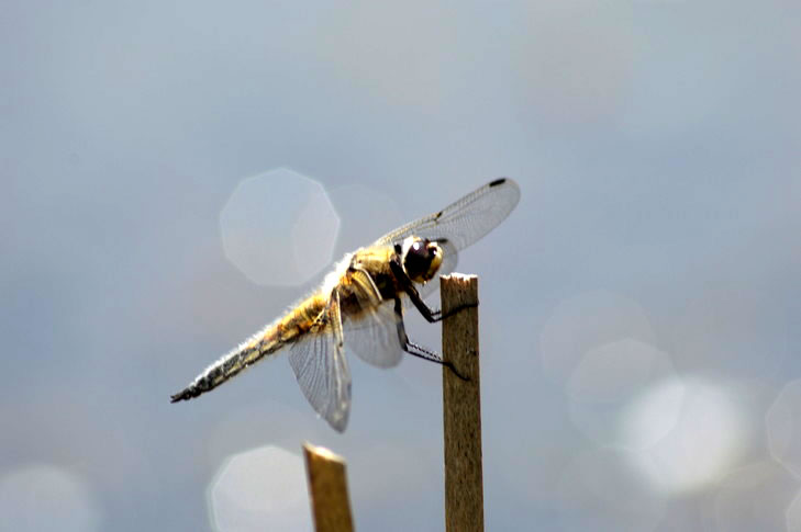 As en Fotomodel rustel se mit de Flüchten, leet sik vun achtern un vörn fotografeern. Ik dach an Morgenstern sien "ästhetisches Wiesel", dat sik vunwegen den Riemel op en Kiesel setten dä. De Libell dä dat för de Klöör. Deerten hebbt Smack! De Biller köönt Se per Klick