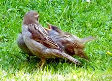 6.8.17 ....Tschilp! Tschilp! As ik dörch mien Goorn güng, höör ik en ludes Tschilp, Tschilp! Snaaksch weer, dat keem mehr so vun mien Fööt her! Dat weern wull lütte Lünken! Brukten se Hölp? Meern up den Rasen wöör ik en Fedderknuul wies. Dat beweeg sik. Vörsichtig sliker ik mi neeger ran. Dat weern wohrhaftig twee lütte Vagels, twee Lünkenkinner!