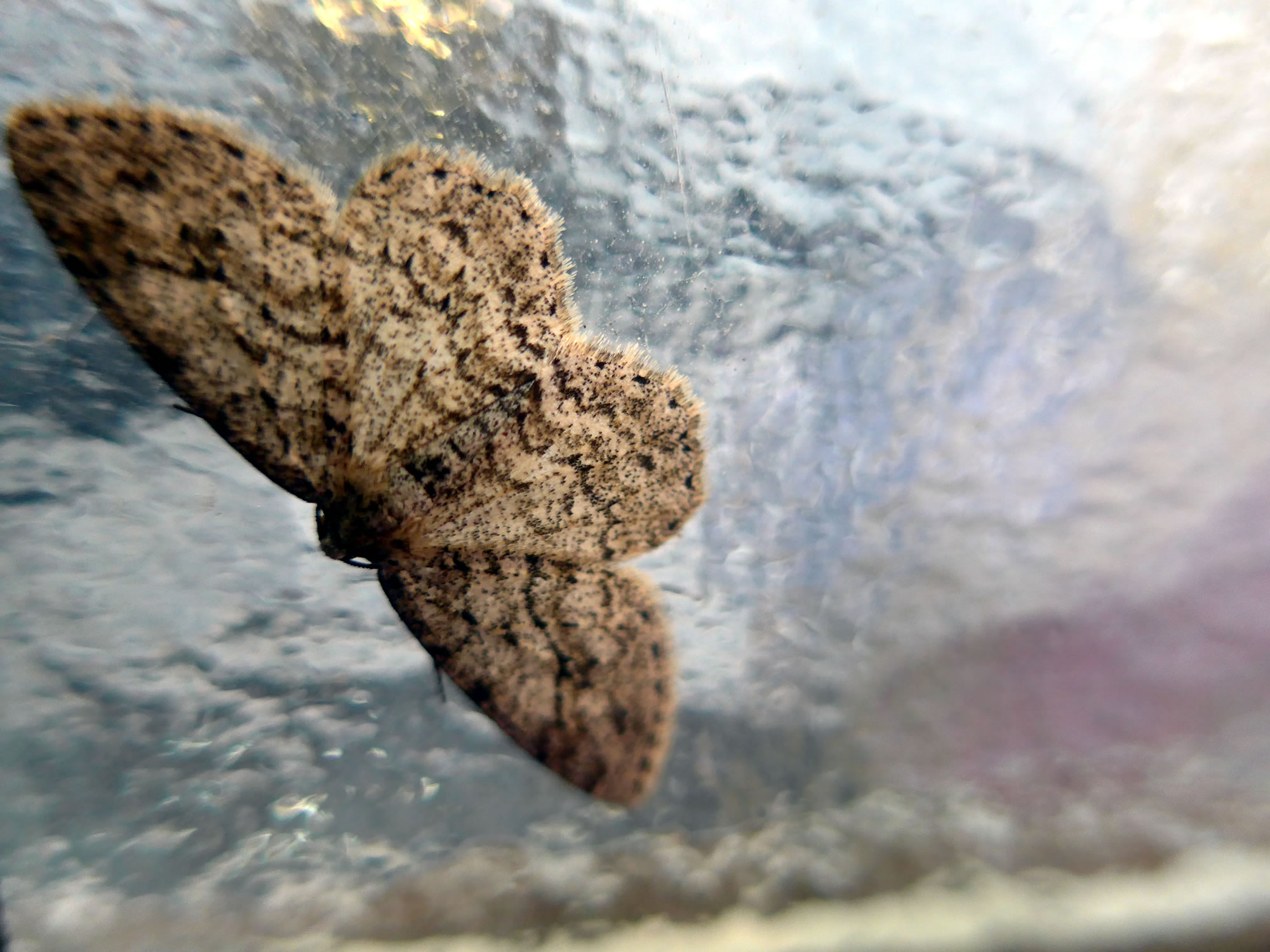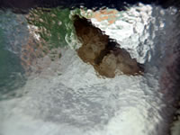 Wokeen hett sik hier Tohuus kiek ik na, wat dat west ween kann. Dat is de Ruup vun en Nachtfalter den Lütten Frostspanner. He is de begängste Schädling an de Hainböök. To sehn weer he nich mehr, wieldat sien Rupen sik nu sachs al verpuppt hebbt. Se stickt denn in'n Borrn toföten den Boom, an den se freten hebbt. De Lütte Frostspanner maakt nich veel her, he is gries, un flegen kann bloots dat Heken. Dat Wievken, en Aart Käver mit Flögelstummeln, blifft an sien Steed, un to Poorungstied rüükt de Hekens vun Wied dat Wievken un fleegt kilometerwied na ehr dör de Nacht... Hmm, tja, dor is en ganze Welt vun Romantik un Aventüür borgen in düsse Löcker, en Welt, vun de wi rein nix afweten doot. In uns Welt kümmt de Lütte Frostspanner sachs gor nich vör. Un in de Welt vun düsse Deerten gifft dat uns nich. Liekers bewahnt wi densülven Planeten. Ok för düsse griesen, eenfachen Deerten is ehr Welt de ganze Welt. Un opstunns slaapt se as Puppen in'n Borrn den Buuk vull Hainbökenloof. Dat Bild köönt