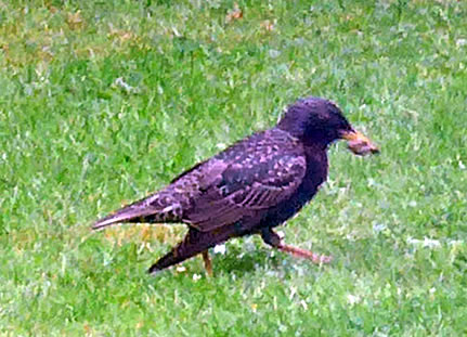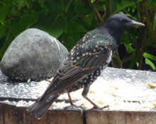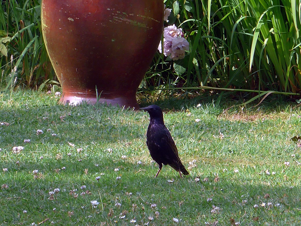 Wat weer dor för en Larm up de Terrass? De Vagels harrn den Ammer mit Vagelfoder ümsmeten! Dat weern ja Stare! De Star is 2018 de Nabu-"Vagel vun't Johr". Mit sien sprenkelt Fedderkleed is he eentlich prächtig, bloots vun Wieden is he unschienbor.