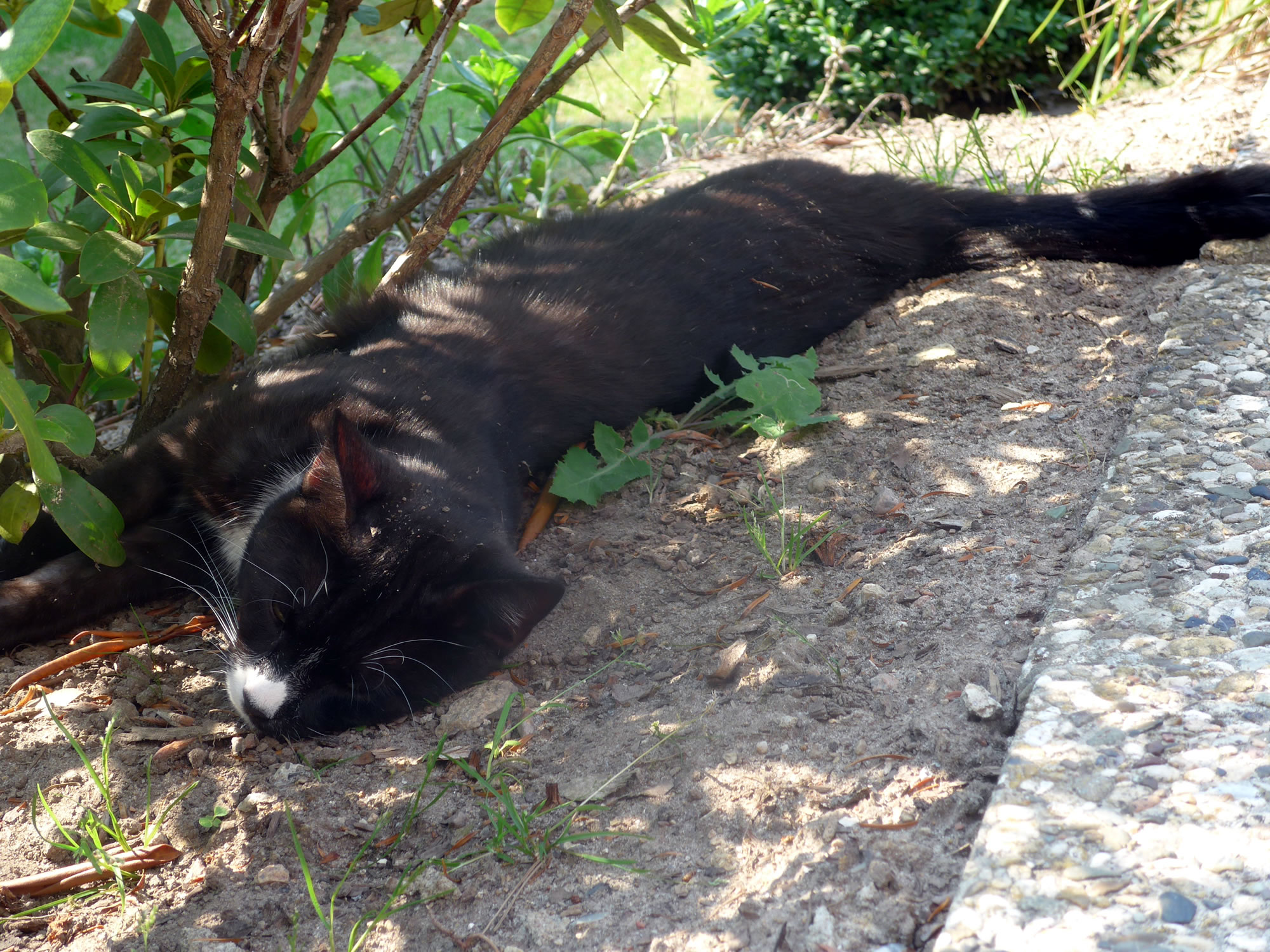Miteens wöör dat ganz hell ünner den Blomenschirm. De beiden Gäst reven sik de Oogen. (Bloots bildlich; reaal köönt dat beide nich.) De Sünnenschien blenn richtig! As eerst möök sik de Imm mit luut Gebrumm up den Weg. Nu rekel sik de Snick, streck ehr Föhler ruut un ünnersöch de Laag. Koppöver möök se sik up den Weg un kladder vörsichtig an den Blomenstengel na ünnen. Ehr Föhler harr se richtig utstreckt. Dat Brummen vun de Imm weer noch to höörn. So harrn de beiden Deerten den Regen goot överstahn. De Biller köönt Se per Klick
