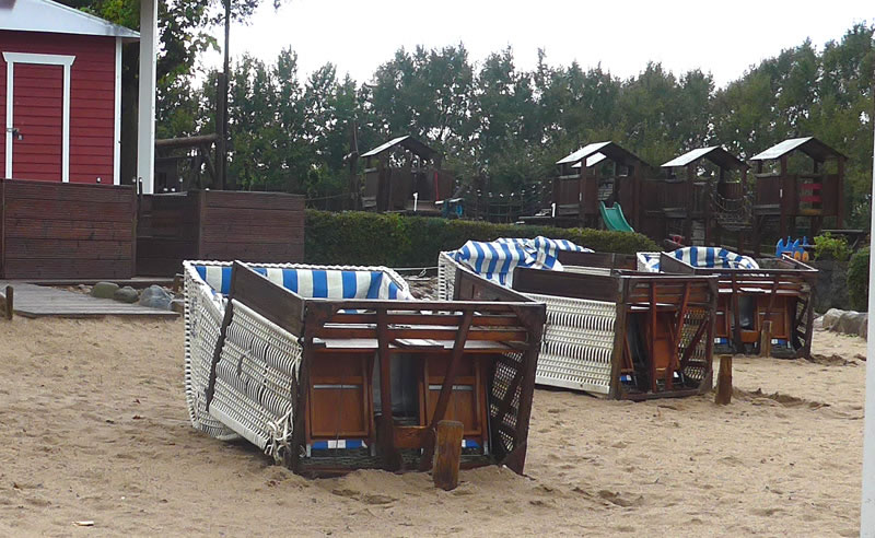 För den 4. Oktober harrn sik mien Enkelkinner anseggt. Se wullen mi dat jüngste Urenkelkind wiesen. Ok de Wedermann harr wat to mellen. De eerst Harvststurm sull mit Orkanböön över't Land trecken. Wi sullen, wenn dat geiht, to Huus blieven. De Bööm harrn doch noch so veel Loof un kunnen uns verletzen, ok in uns Auto. Nu keem de Besöök, ik möök op un keek rut de Storm wöör doch woll nich so leeg warrn?! As wenn mi de Storm anter, hau he mit luden Knall de Huusdöör to. Dorna trommel he mit den Regen gegen de Finsterschieven. De lütte Enkeldochter krööp ünner de Jack vun ehrn Vadder. "Nu kaamt man gau in't Huus!", reep ik. "Sünst hebbt juuch keen dröög Tüüch mehr an Lief!" Vun de Stuuv keem ehr warme Luft entgegen, in't Huus weer dat överall schöön warm. Bald harrn se dat störmsche un natte Begröten vun den Harvststurm vergeten. Annern Moorn hebbt wi an'n Fröhstücksdisch beslaten, dat wi enen Utfloog an't Water maken wulln. Dat wull aver noch gor nich so recht hell warrn. Aver de Oostsee-Steilküst bi Brodten trock uns ümmer wedder an. Gau weern wi in de waterdichten Plünn un föhr'n dat eerste Enn mit Auto. Wat hebbt wi uns verfehrt, as wi üm de Eck vun dat Strandlokal kemen! De Oostsee weer upwöhlt. De eersten Meter vun den Lehm weern gries farvt. De Strandkörf, de noch vör dat Lokal stahnbleven weern, legen all up den Rüüch. Vun de Steilküst weer wedder en grotes Stück Land in't Water fullen. De lütten Bööm weern mit dat Wöttelwark en poor Etagen deper rutscht. Överall leeg verstreut Astwark. Bunte Bläder bedecken den Waterstrom vun den Regen. De Storm Xavier harr ganze Arbeit maakt! Nu wies sik an Horizont en hellen Striepen. De Sünn harr sik dörch de Wulken arbeit. Wi kunnen sogoor dat Över vun de anner Siet sehn. Wat goot, dat wi uns up den Weg maakt harrn! För uns weer dat ok en richtiges Belevnis. De Biller köönt Se per Klick