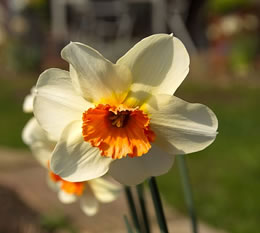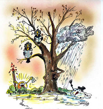 Aver Kalli kiekt en beten bedripst. Fraagwies öögt he den Boom hooch, de noch kahl is. Wat drifft em üm? Wüllt sien Hehns nich so as he? Wiest se em de kole Schuller? Orr is he bloots benaut, wieldat de smucken Schachbrettblomen al afblöht un verwelkt sünd? Dor mutt he nich lang töven, veel annere Blomen staht nu all in de Startlöcker! De Biller köönt Se per Klick