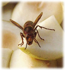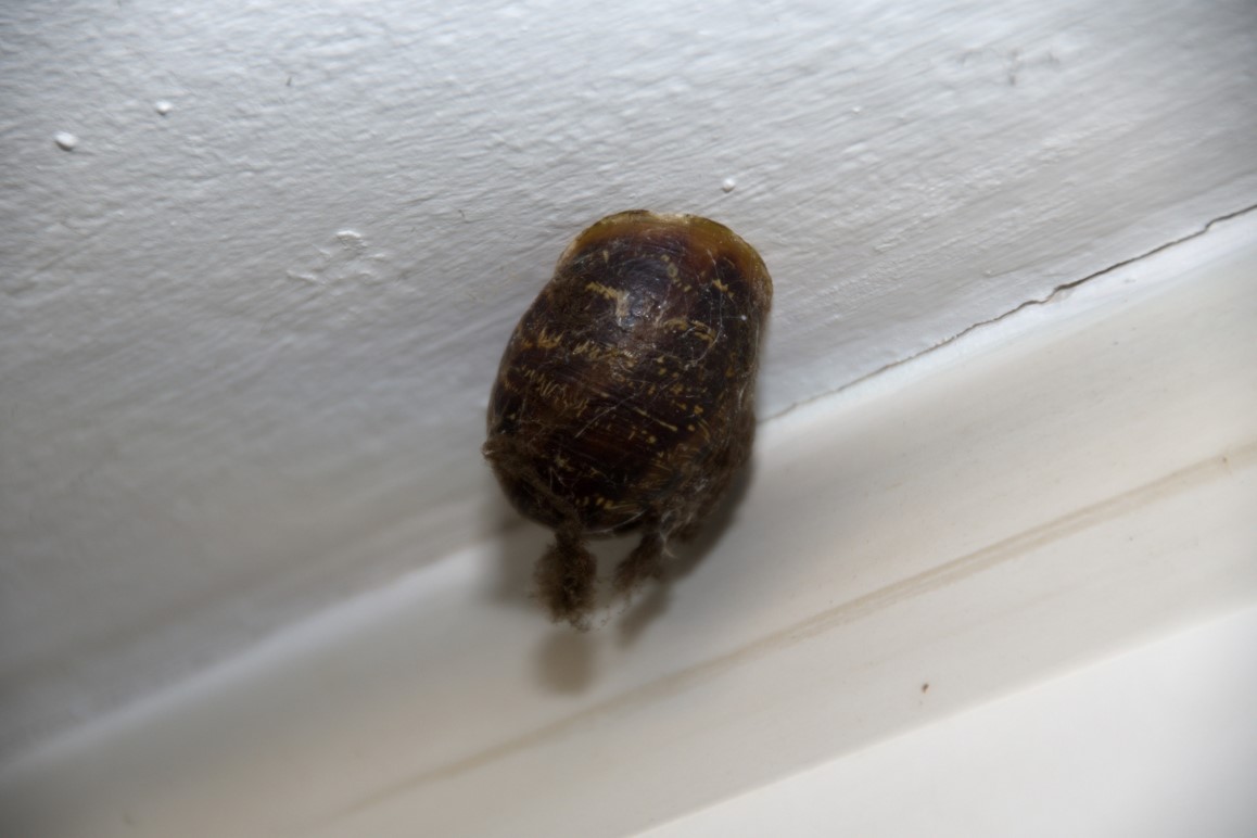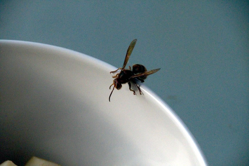 Auweia, dach ik, as ik in mien Warksteed keek. En snaaksches Gebilde hüng dor an de Deek, lütt, bruun un rund is dat etwa de Anfang vun en Wöpsennest?! Denn heff ik den ganzen Zirkus an'n Hals, entweder de Wöpsen fachgerecht ümsiedeln orr de Warksteed is för ganz schön lang tabu un ik harr noch veel vör.