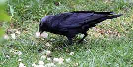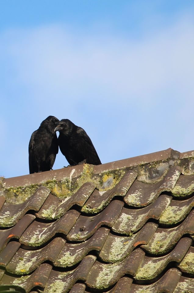 "Hest al höört...?" So seht düsse Kreihn dor op't Dack jüst ut. Kreihnvagels sünd hoochplietsch, se hebbt meistto de Anfänge vun en Grammatik in ehr Spraak, köönt Warktüüch bruken un hebbt en komplexe Soschaalstruktuur. Keen Wunner nich, dat een glöövt, se heckt hier wat ut! Dor mutt een gor nich an Hitchcock denken. Oft noog hebbt Kreihn al Undöög dreven. Orr sluut wi Minschen dor bloots vun uns op annere...? Dat Bild köönt Se per Klick