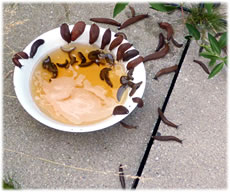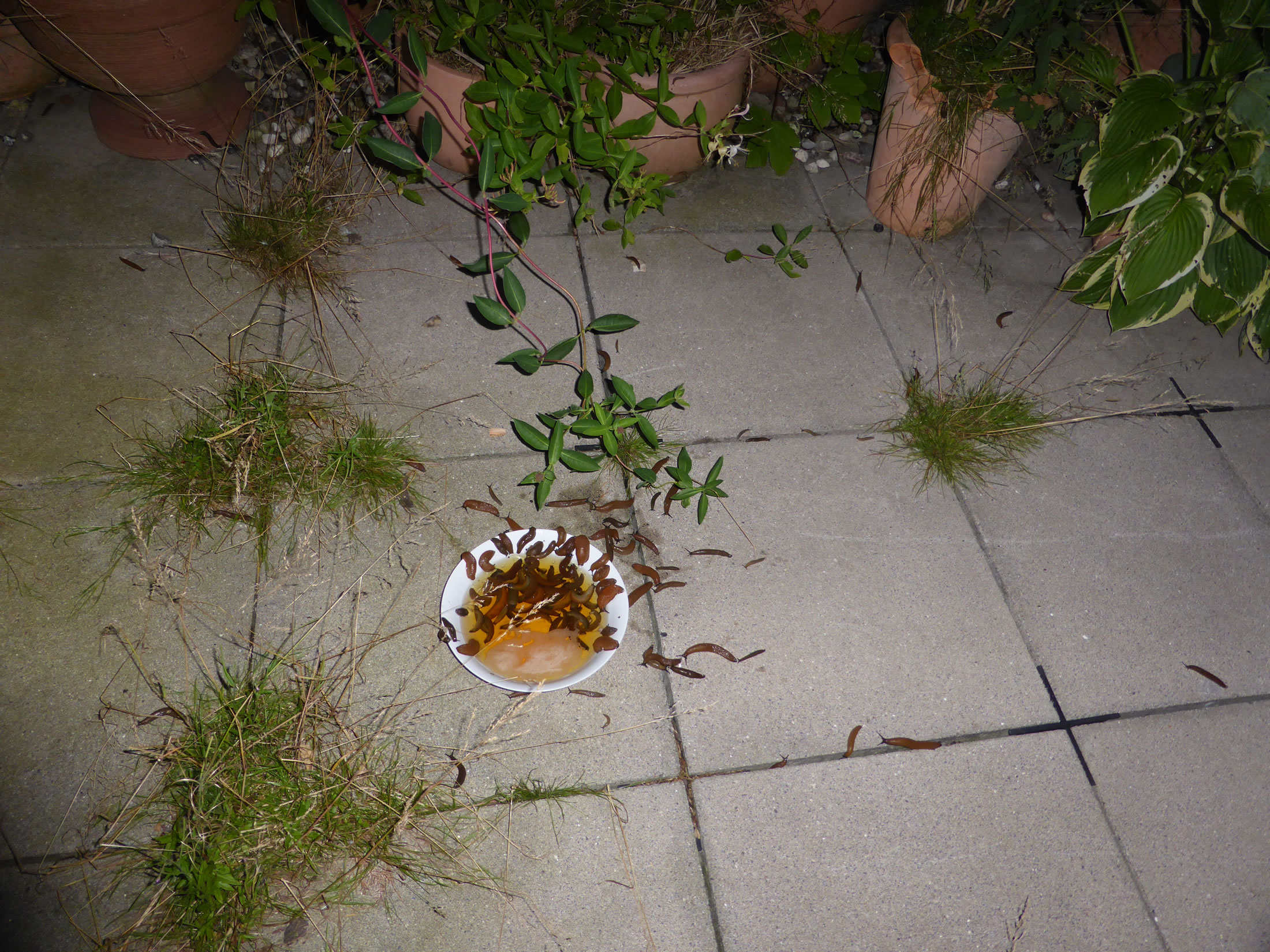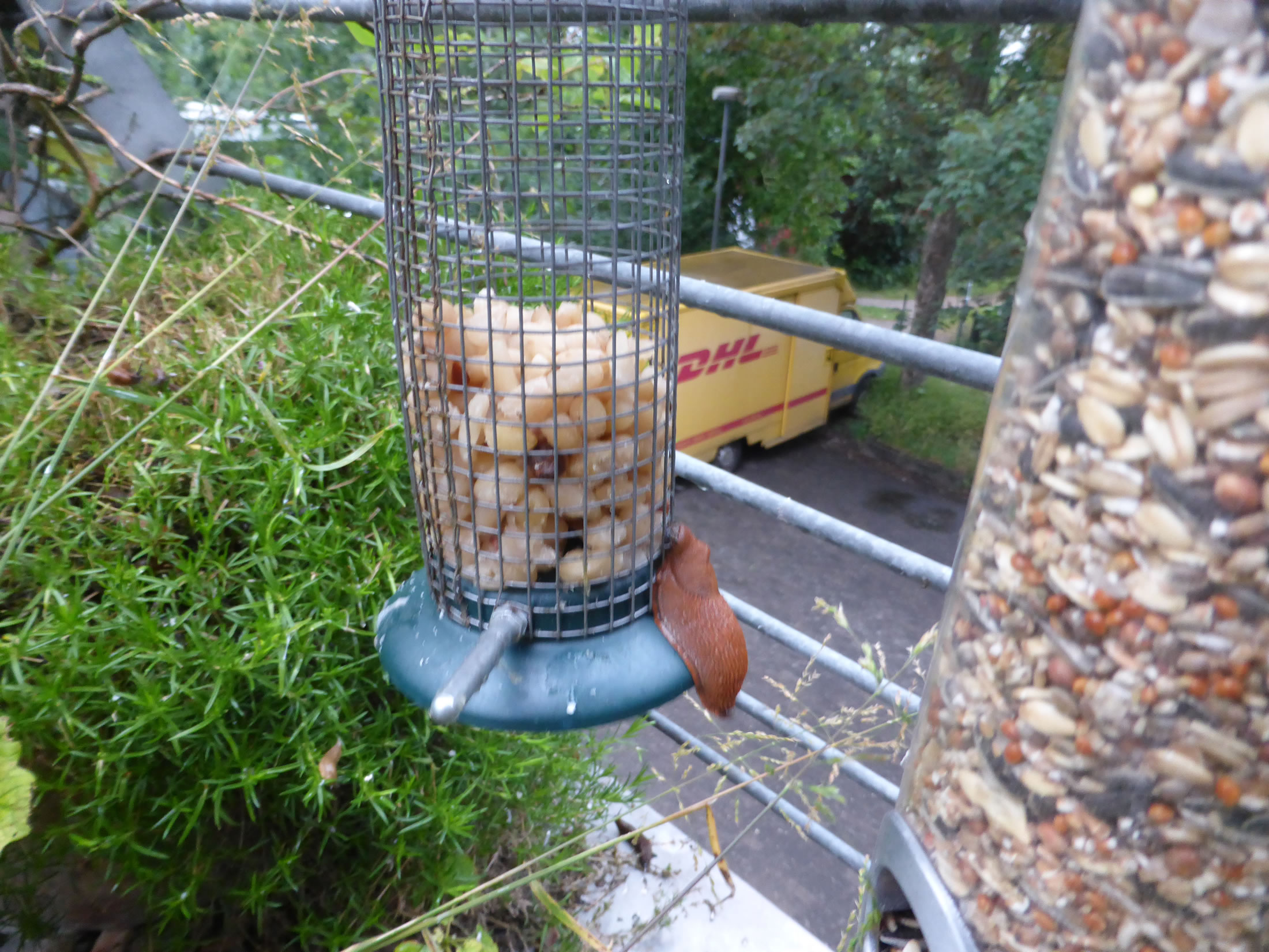 Tomehrst sünd dat Haferflocken, de vun Regen matschig worrn sünd. Gifft nix Schöners för de Snicken! Un de Vagels, mutt ik ja seggen, versaagt totaal bi't Snickenvertilgen. Nich mal de groten Vagels, Elstern usw., freet de Snicken! Angeevlich doot dat Flaschenenten, avers mutt ik mi etwa welk anschaffen?!