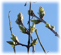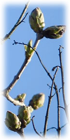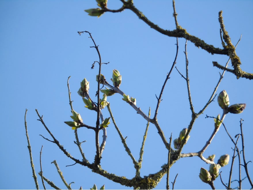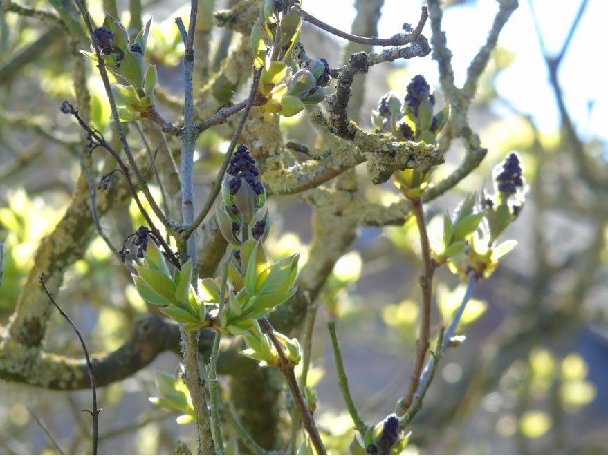 .... En beten to optimistisch weer ik bi den Fleder, he is nich mehr in'n Märzmaand opgahn, aver nu lett he sien blaue Blödenbläder sehn. De Struuk is noch jung un mutt noch wassen. Villicht deit he düt Johr en origen Schuss. De lütte Blaumeesch sitt in'n Avendsünnenschien un kiekt sik de Saak an. Ehr Nest is torecht, de ganze Tied fleegt de lütten Buttscher mit Nistmaterial in'n Snavel rüm, sogor de Kreihn un Elstern. De Biller köönt Se per Klick