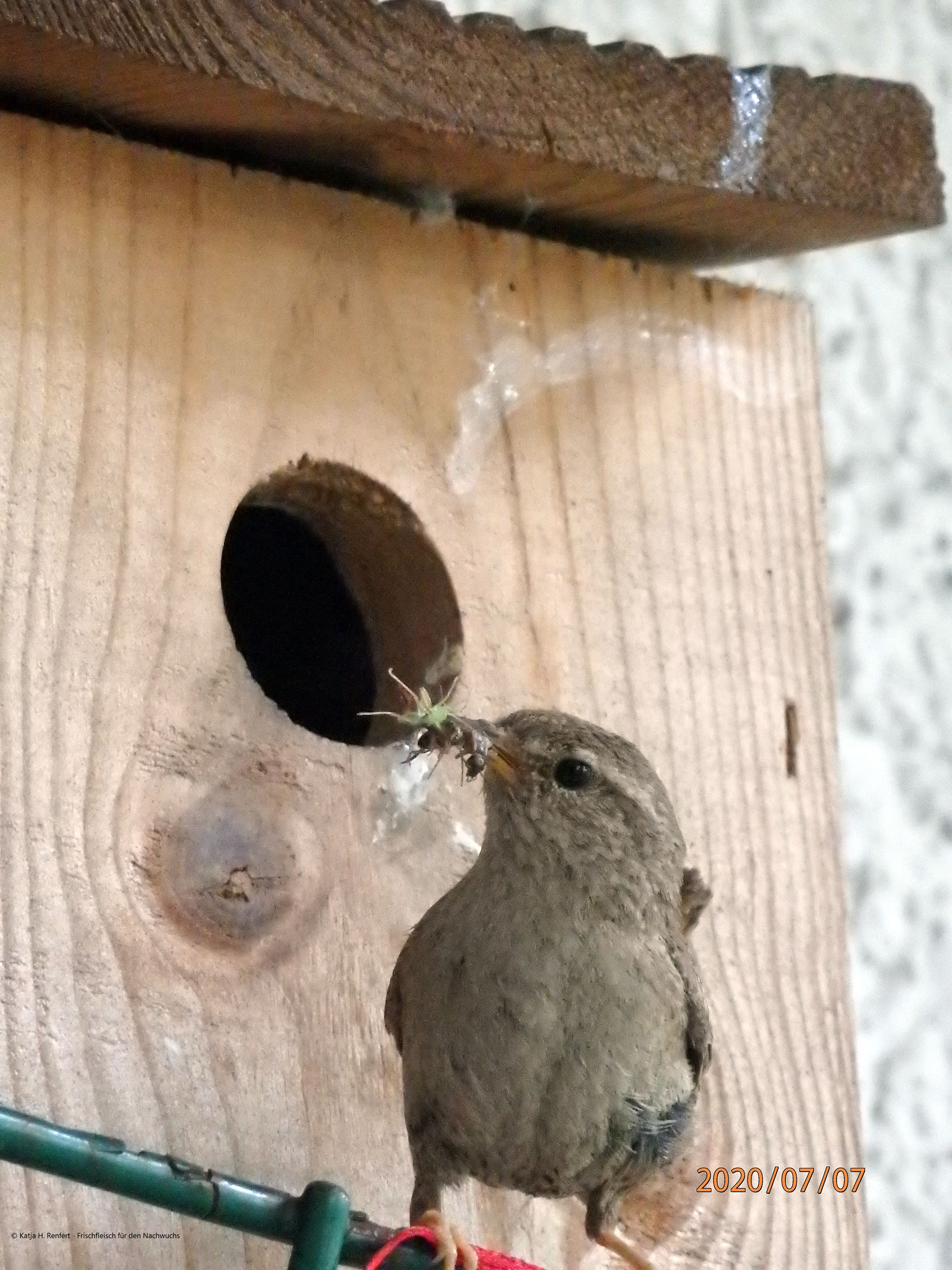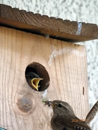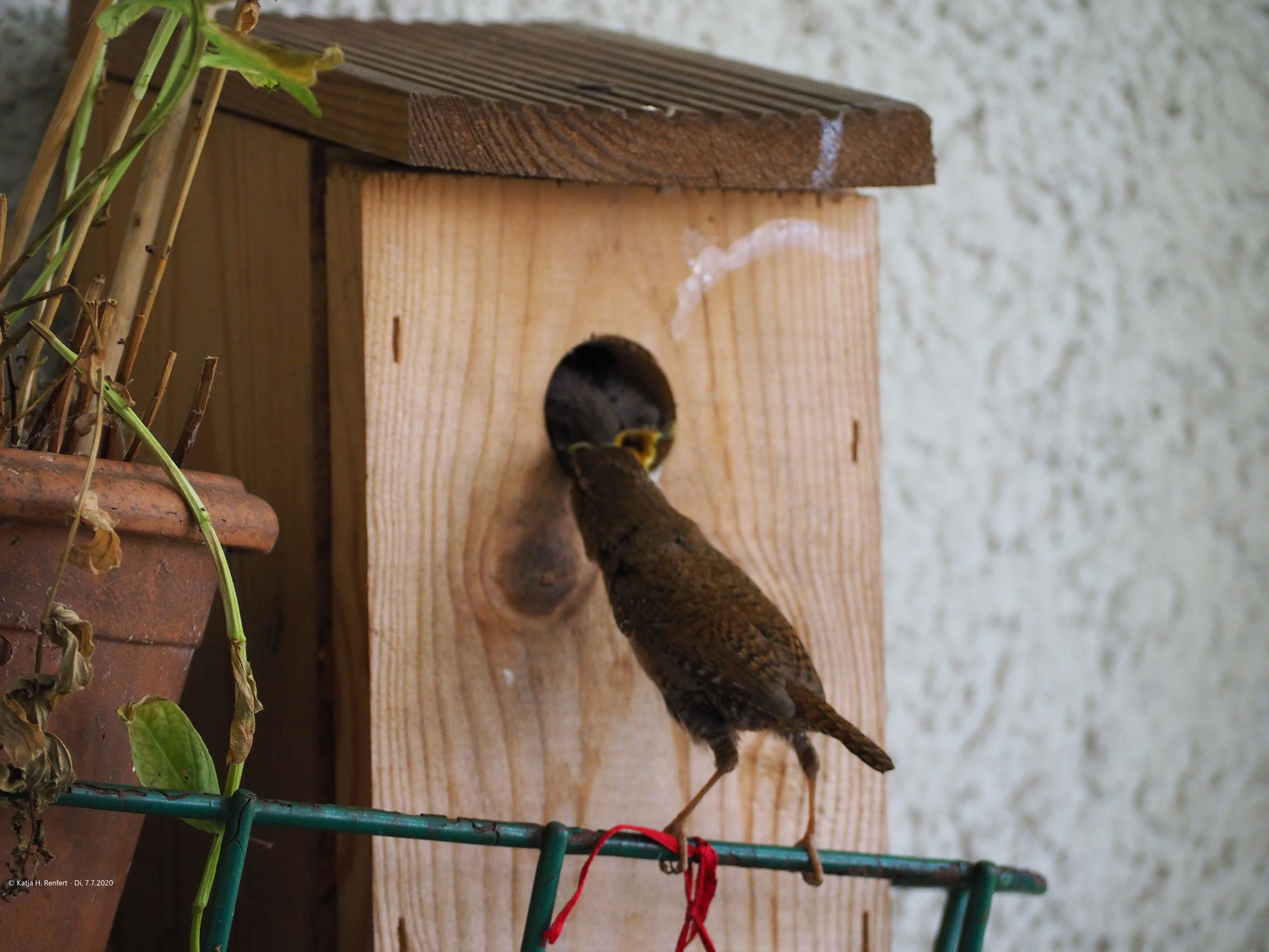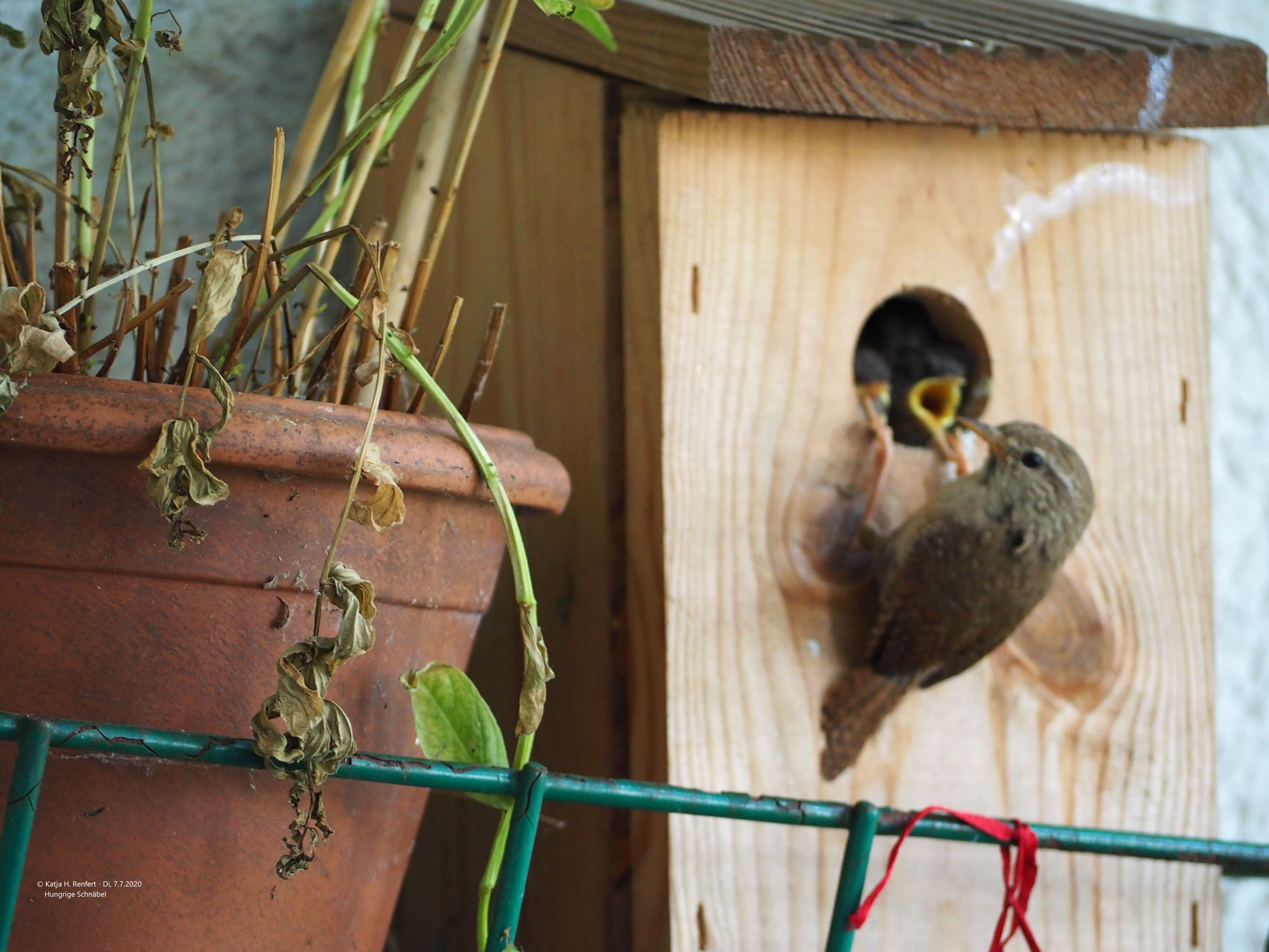7.7.20 ....Königskinner op'n Balkon An'n sössten April bün ik to'n eersten Mal wies woorn, dat dor en Nettelkönig ok as Tuunkönig bekannt ahn Ophollen vun fröh bet laat den Nistkassen mit Moos un anner Tüügs vun de Wisch achter't Huus bi uttostoppen un to polstern weer. Ok ut mien vele Blomenpött hett de lütte König sik bedeent binnen fief Daag (!) weer de Nistkassen bet baven hen vull. Wat ok jümmers in dat Huus wahn, müss sik föhlen as de Prizessin op de Arft, man ahn de Arft. Bi all de Arbeit hett de Nettelkönig twüschendörch noch flietig trillert.