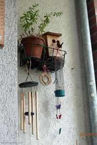 dörch de Mit eens güng de Terassendöör up. De Gelegenheit nehm de lütte Fleeg wohr. Toeerst flöög se an de Deck vun de Terrass. Vun dor harr se en betere Översicht. Gau harr se en Blatt funnen. So en lütte Fleeg mütt even wat Gedüür hebben! De Biller köönt Se per Klick